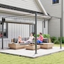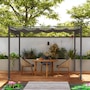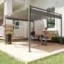 Create a shady and cool spot in the garden, anytime. Opt for this Outsunny 10 x 10 ft pergola with roof. It's fitted with an adjustable canopy - slide it to a position you want, to let in as much or as little sunlight as you with; the hook fastenings keep it securely in place and allow smooth movement. It has a UV-resistant coating for safety in the sun. Fix it to either cement, grass or concrete surfaces, thanks to the included 8x ground stakes and 8x anchor bolts.Features: