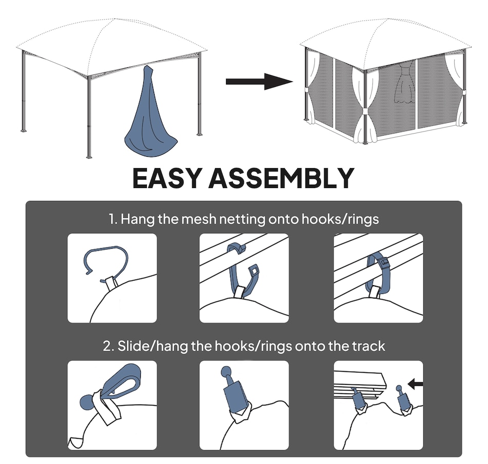 ● Fits most 4-panel 10' x 12' (3x3.6m) gazebos;