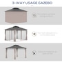 Offer the optimum atmosphere for your guests during the summer with this wooden roof gazebo from Outsunny. Have privacy and protection with its curtains which you can tie when you don't need them. Mesh netting keeps bugs out. The hardtop gazebo offers better protection from sun, rain, and wind, keeping your interior cool. A gazebo with curtains and mosquito netting will create the right impression at your next barbecue or outdoor party.Features: