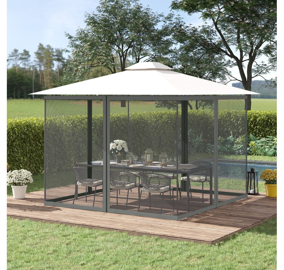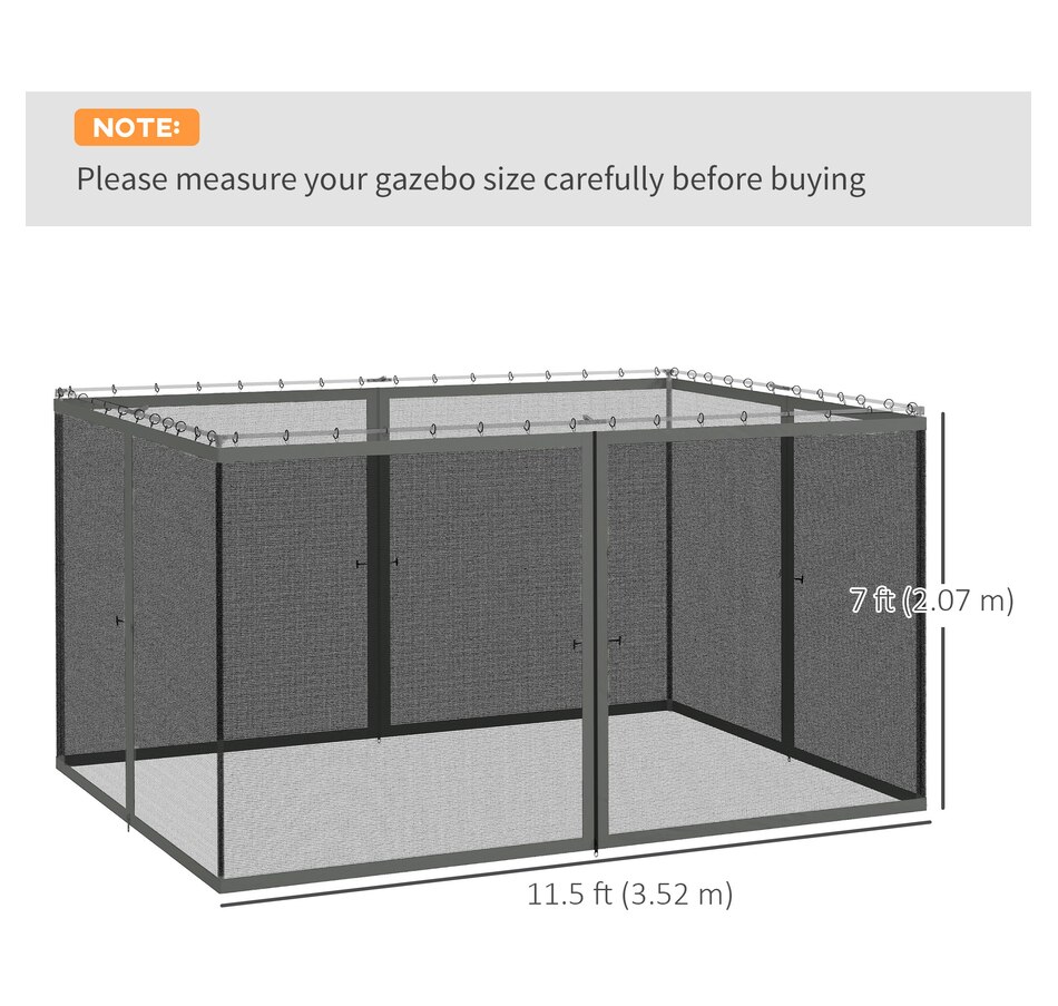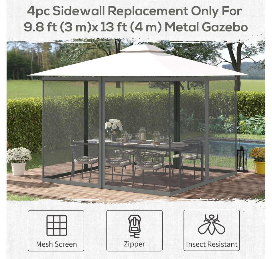 The replacement gazebo netting from Outsunny perfectly fits a 10' x 13' (3x4m) gazebo. Large outdoor eating and gathering areas make it a true delight to eat outside. When the wind blows, it effectively keeps pests from raining. Additionally, you can easily see your surroundings because of the nylon mesh material. Your gazebo will greatly benefit from having these patio mosquito net drapes. It improves the appearance of your canopy.Features: