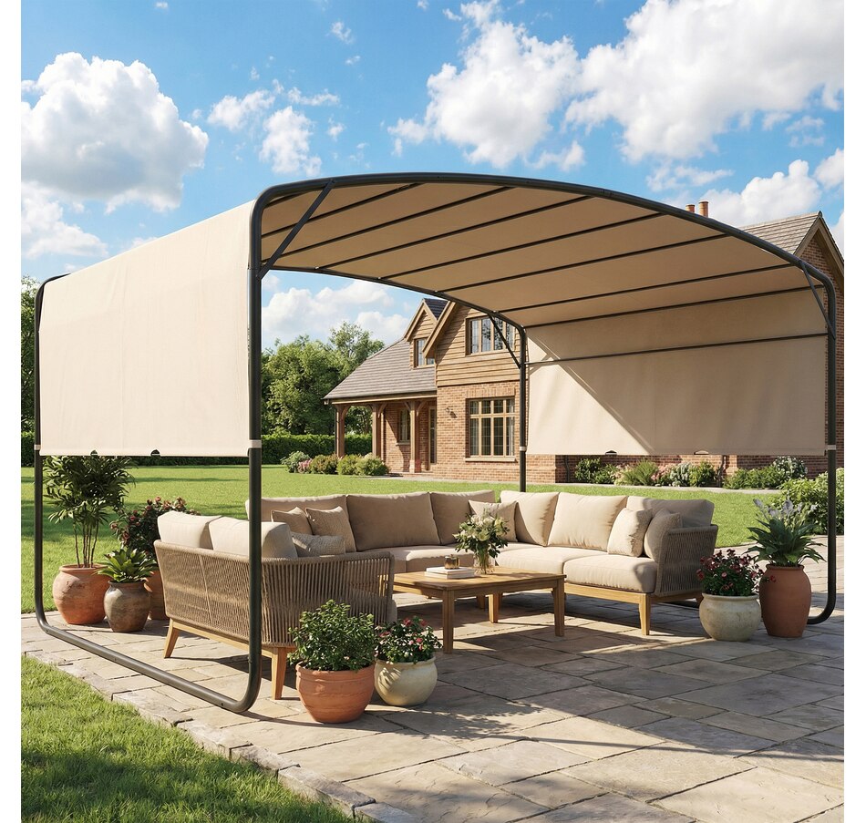 Create a relaxed outdoor retreat with this Outsunny 10 x 13 ft (3 x 4 m) pergola gazebo, made for flexible shade and everyday comfort. The adjustable sliding roof allows you to fine-tune sun shade from both sides, while the UPF30 PU-coated polyester canopy helps protect you from harsh sunlight. A powder-coated galvanized steel frame with triangle reinforcements offers dependable stability, and included ground stakes add extra peace of mind for garden or patio use.