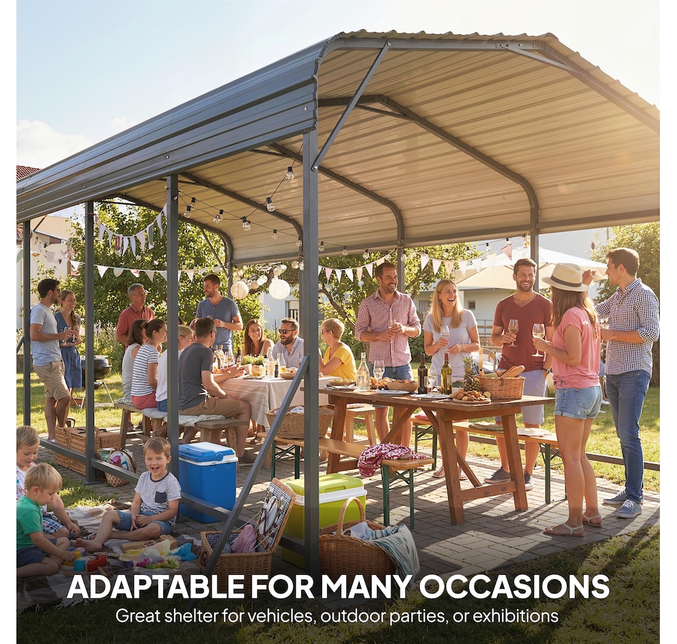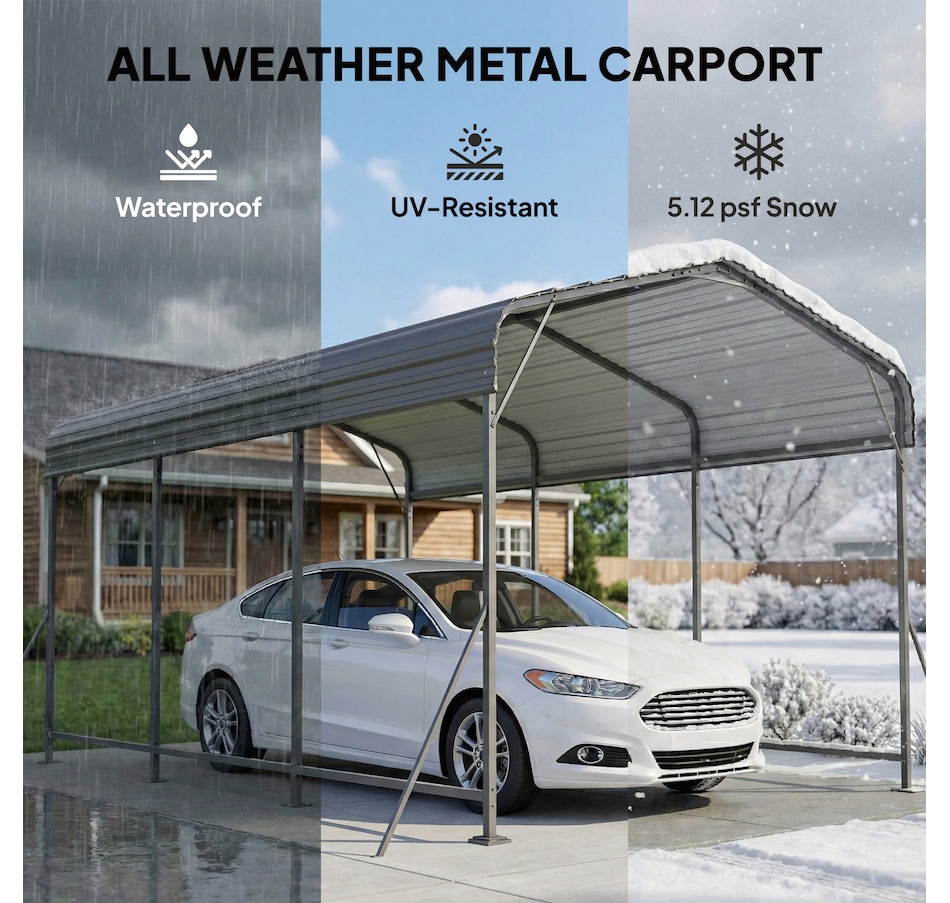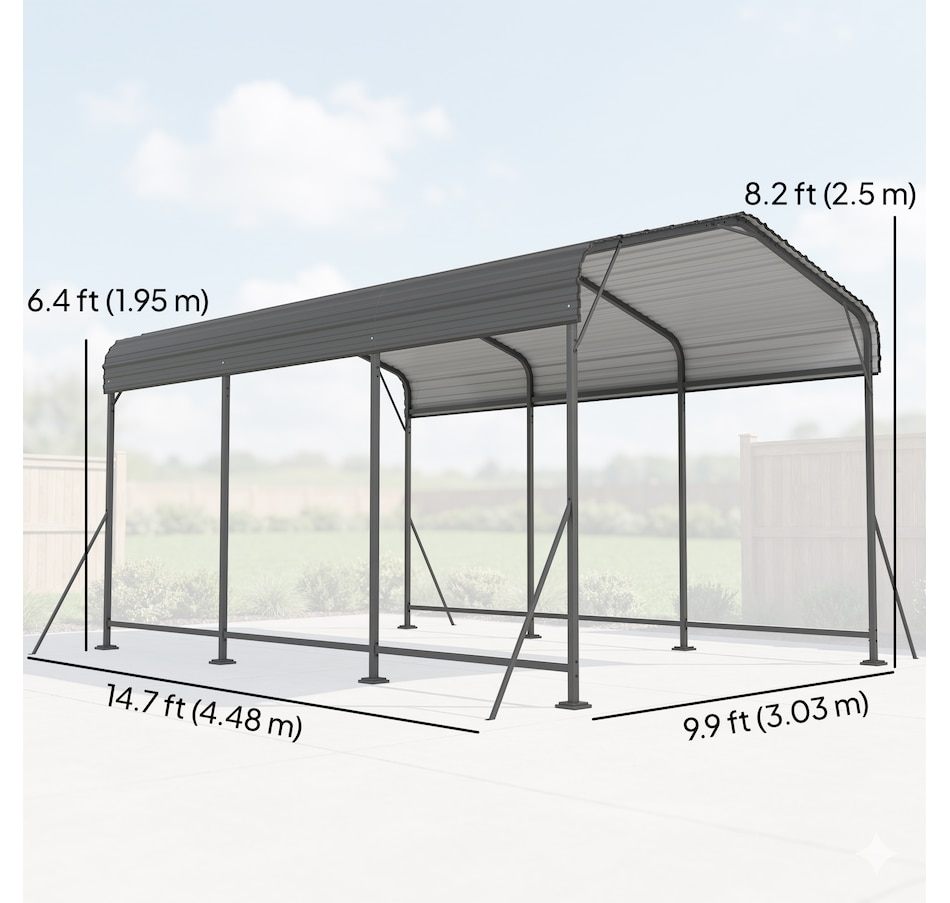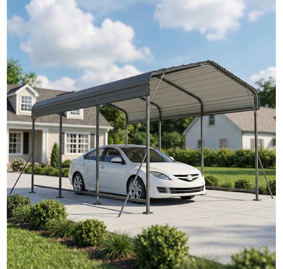Tired of your car enduring unpredictable weather? The constant exposure to harsh sun and sudden downpours can be worrying. The Outsunny 10 x 15 ft heavy duty metal carport offers a robust steel sanctuary with a sloped gable roof, ensuring rain and sunlight don't stand a chance. This spacious carport provides more than just vehicle protection; it's a versatile extension of your home for projects or gatherings, bringing both utility and peace of mind.