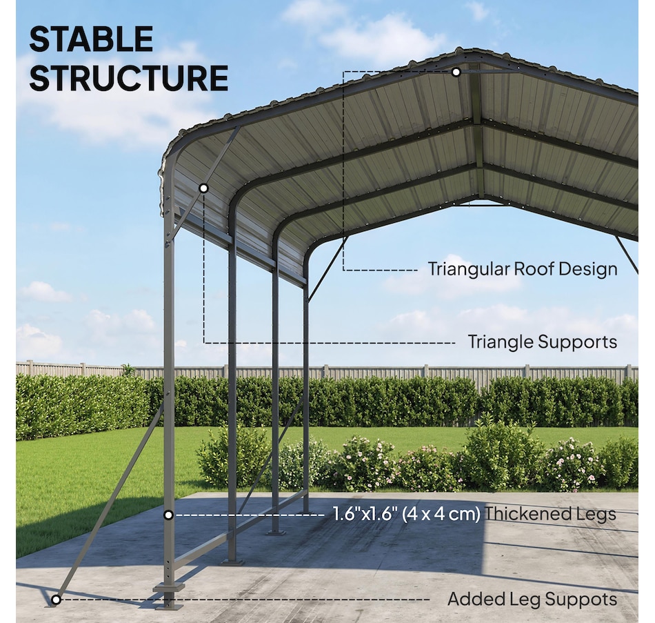 ● Thick 1.6 x 1.6 in tubes deliver a more stable carport structure;