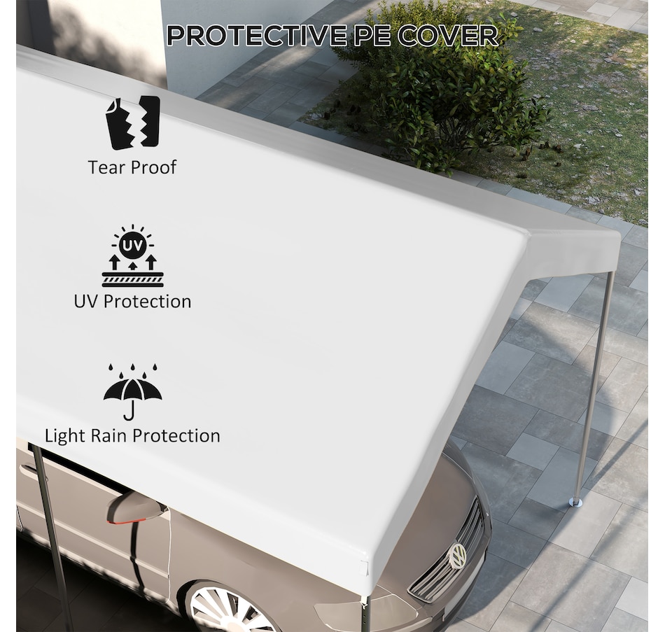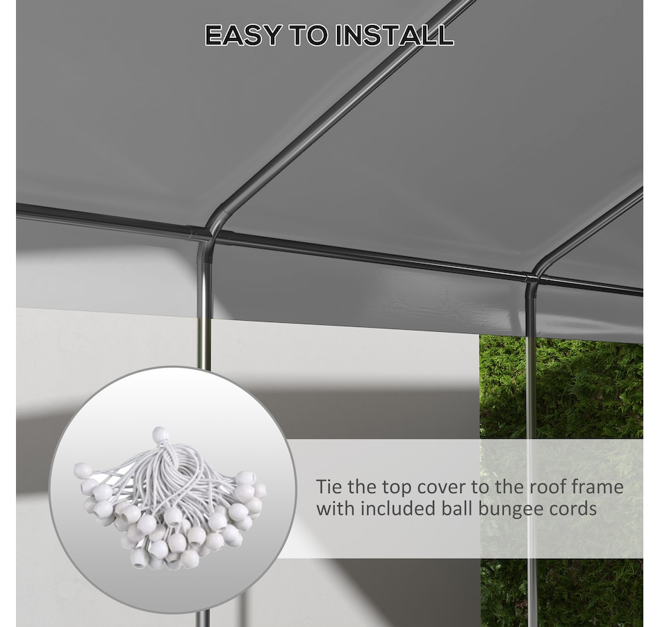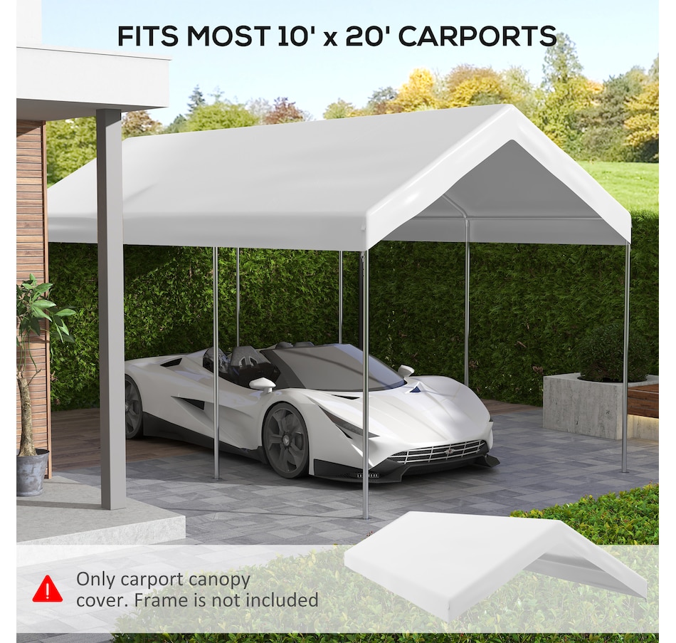 Bringing your carport back to life is easy with this 10x20 carport canopy replacement cover from Outsunny. A solid anti-UV PE material shields your car from light rain, wind, and dirt. Bungee cords are included to secure the canopy tightly to the frame. Warm Note: This is only the carport canopy cover. The frame is not included.