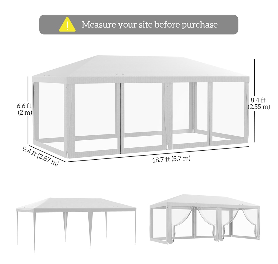 ● Note: We advise customers never to leave it up overnight or in bad weather. This requires 3-4 people to assemble. Measure your site before buying.