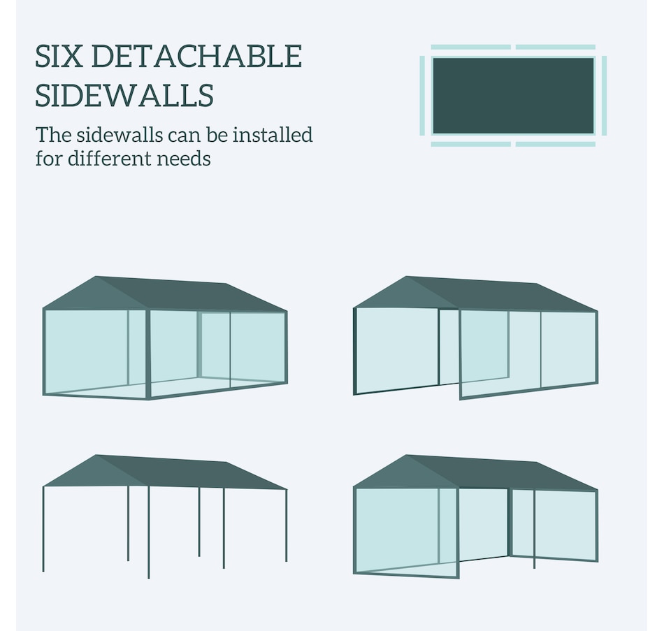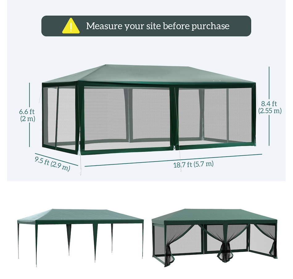 This new 9.8' x 18.7' outdoor canopy tent is a great outdoor shelter. It is ideal for car tent, family party, sport events, outdoor vendors and more. Rust free steel construction with quality polyethylene canopy, this backyard tent is more durable. Pull ropes and ground stakes are included for added stability, easy to set up and take down.