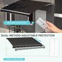 Provide cover for yourself outdoors instantly with motorized outdoor shades from Outsunny. The window awning frame is made from a blend of aluminum and steel, ensuring it is strong and reliable for use outdoors in all weather. Using 270g/m², the retractable sun shade auto awning features a PU coating on the top, helping to protect you from UV and sun glare without fading the colour - allowing it to be used all year round.