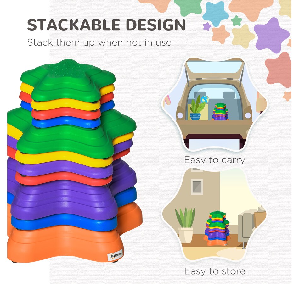 Are you looking for a safe and fun activity for your child? Not only do these Outsunny kids balance stepping stones provide fun, but they also help strengthen your kid's core for better endurance and balance. While they think they are jumping around having fun, they also exercise their bodies to become stronger. It's like hiding vegetables in the food; they will never realize they're doing something good for them. Encourage fun and fitness with these Outsunny outdoor stepping stones.Features: