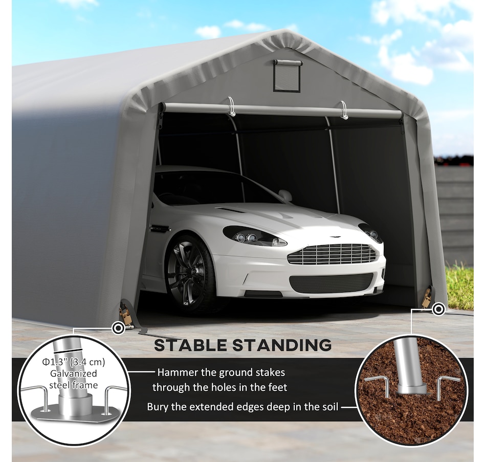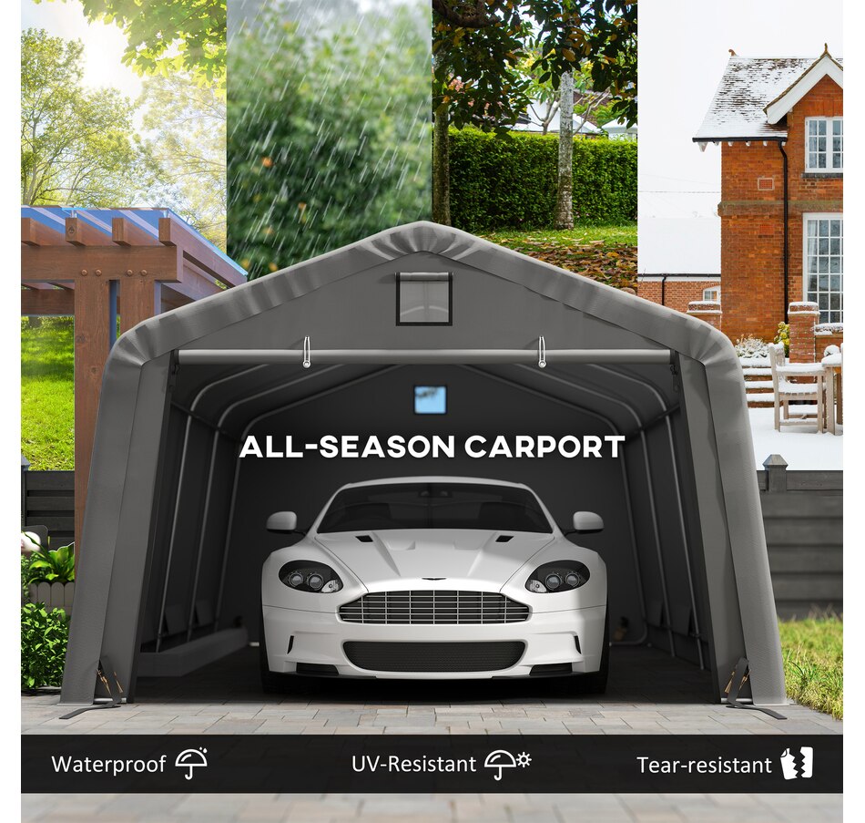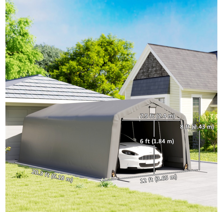 12' x 20' Garage Carport with Ventilation Windows, Grey