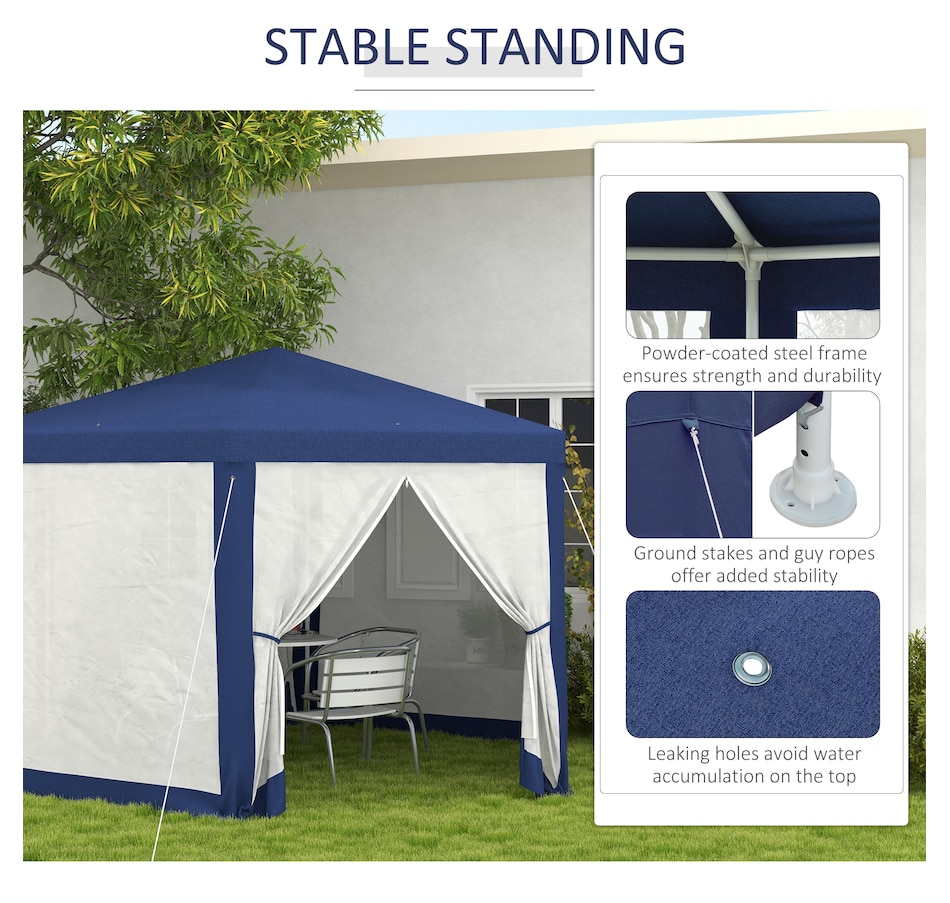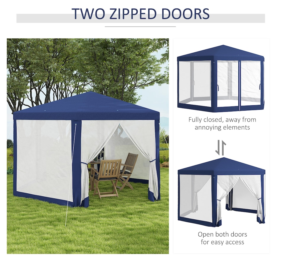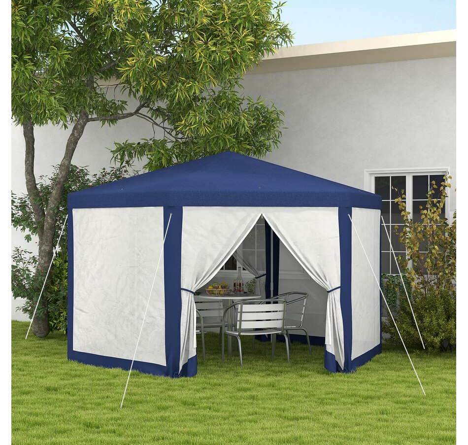 This Outsunny outdoor tent canopy is great for family parties and weddings. The peak top hexagonal outside tent has a powder-coated robust steel frame for stability. Includes six mesh sidewalls (2 zippered) to vary the amount of light and ventilation. The fully enclosed netting covers the outdoor party tent to keep the insects away. With this canopy tent with sidewalls, your friends and family will have an excellent place to enjoy outdoor living!