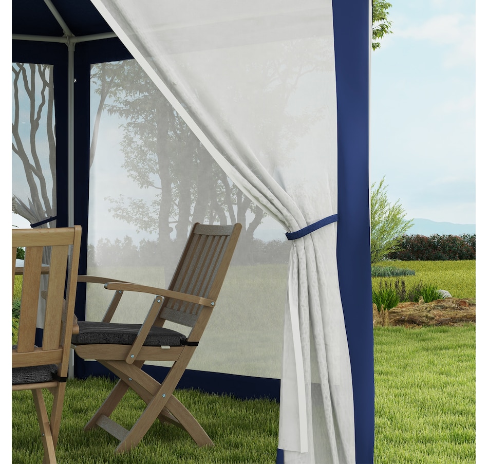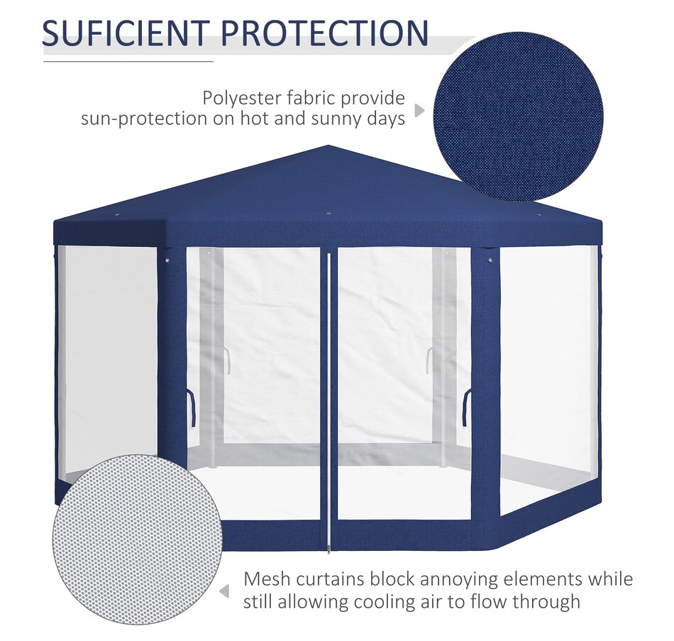 Hexagon Party Tent, Patio Gazebo with Netting Mesh, Blue