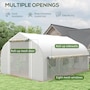 Extend the growing season, this year and beyond - thanks to this Outsunny greenhouse. A galvanised steel frame for it to stay in shape, with guy ropes and stakes included to pin to the ground. The 13 x 9.8ft (4 x 3m) size is great for holding plenty of plants - the open design means you can set it up inside how you want it. Zipped roll-up mesh door, eight mesh windows and two roll-up wall panels: easy access and ventilation, whenever.Features:
