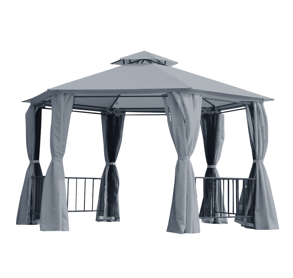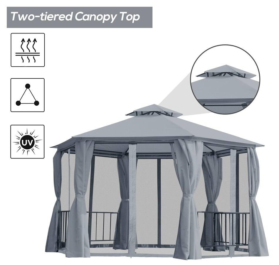 Hexagon Gazebo Outdoor Canopy Shelter w/ Netting and Curtains