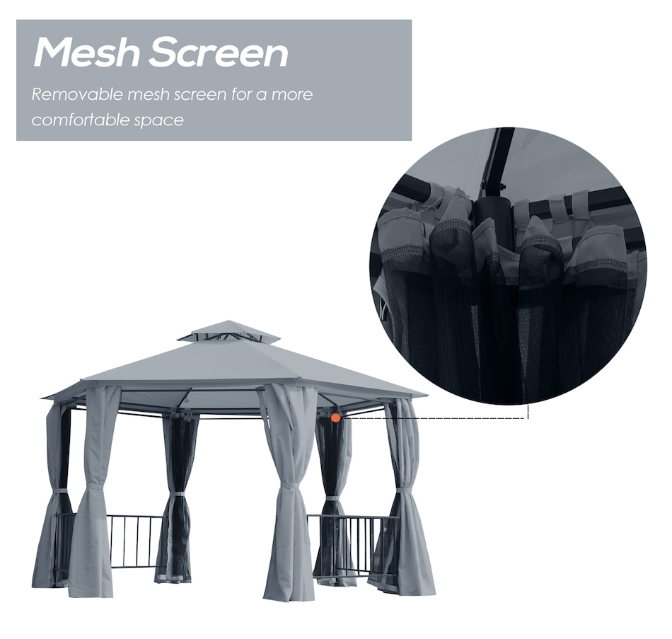● Gazebo with mesh side walls, ideal for patio, backyard, garden, park, etc;