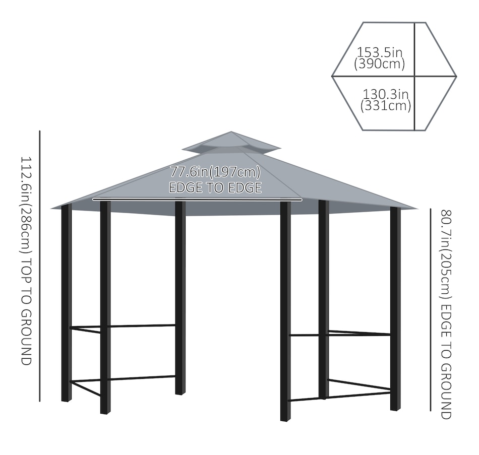 The gazebos for patios provide plenty of shade, while the mesh netting keeps bugs away with the double-top covering. It is supported by a durable rust-resistant steel frame with 4 side safety bars designed to set up on flat surfaces and will last for years. Featuring generous space inside, so you can set up desk and chairs underneath the backyard canopy to enjoy a breezy day or a pest-free relaxing moment.Features: