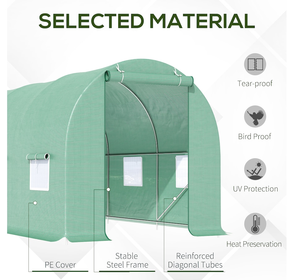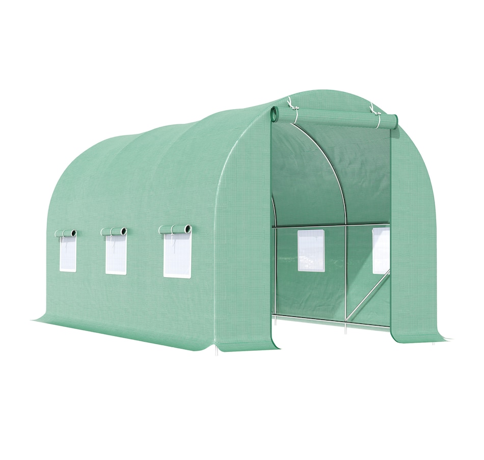 This Outsunny greenhouse kit complete is perfect for home gardening enthusiasts. The galvanized steel tube frame and UV-fighting PE mesh cloth cove of the reinforced steel greenhouse stand up to the light rain and wind. A zippered door provides a tight seal while also allowing quick in and out access the greenhouses for backyard. The six windows allow natural lighting to pass throughout the entire structure. Our outdoor greenhouse kit is the ideal solution for planting throughout the year.