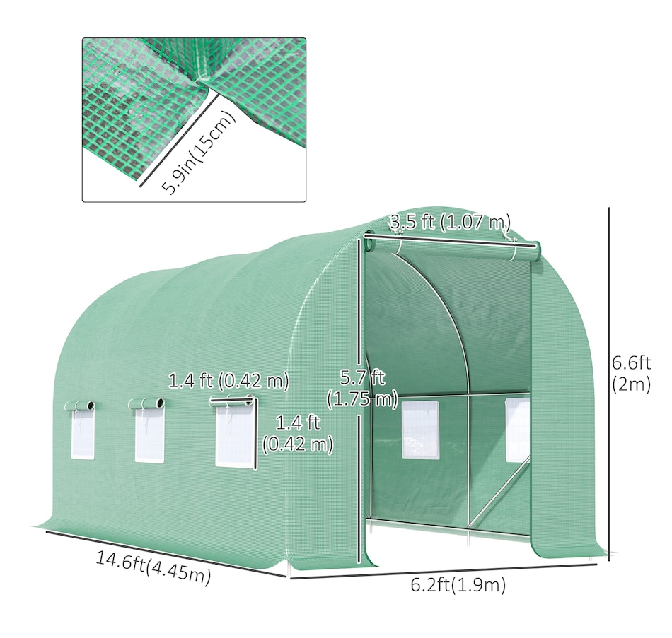 14.6' x 6' x 6.6' Walk-in Tunnel Greenhouse