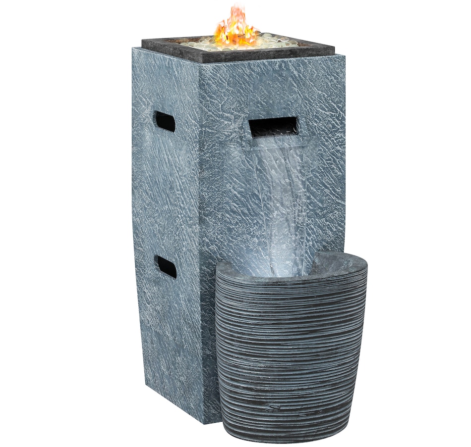 ● 15000 BTU gas fire pit table combines with garden fountain;