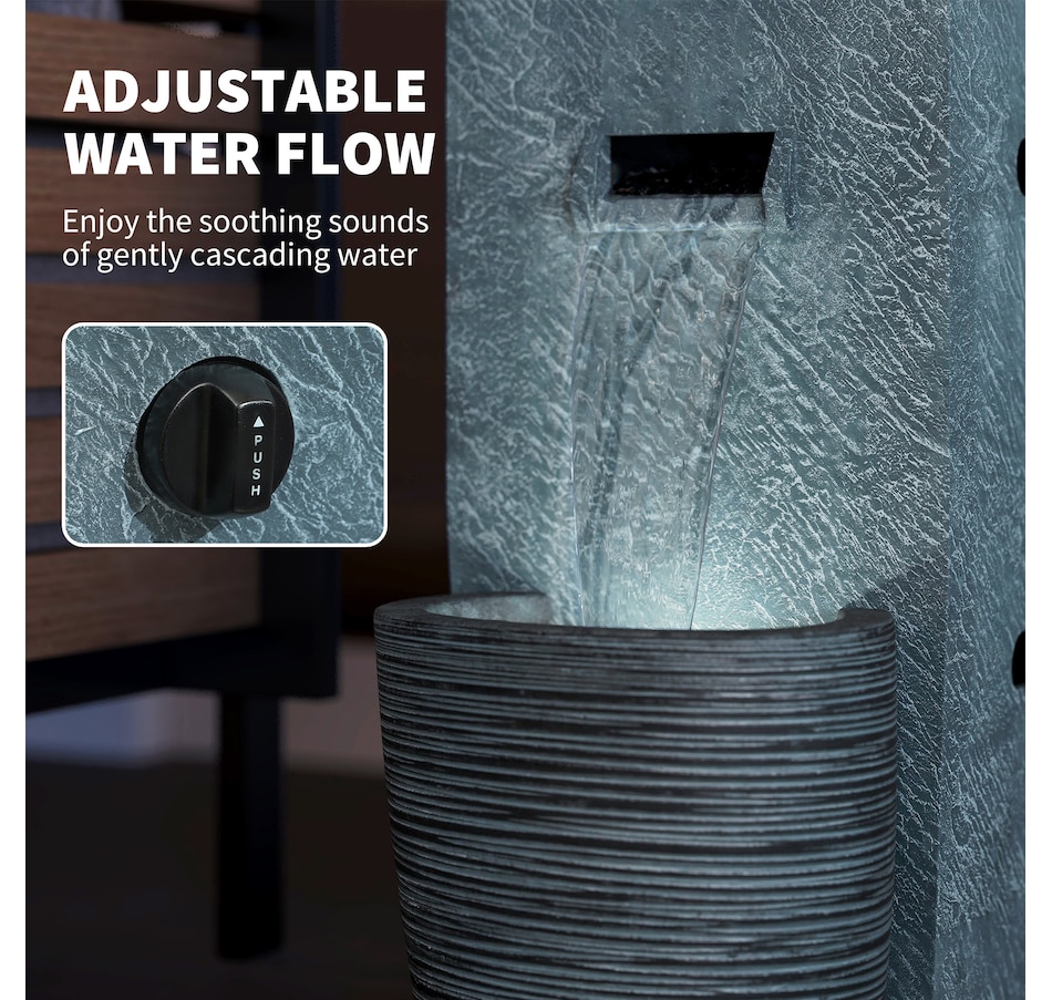 ● LED light with adjustable water flow enhances a tranquil vibe;