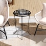 16" Patio Side Table, Metal Outdoor Table with Grid Top, Black