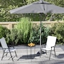 Add a touch of elegance to your outdoor space with the Outsunny round patio table. With a compact yet tall size, this balcony table is lightweight yet robust and easy to relocate, making it a versatile choice as an outdoor coffee table, end table, bistro table, side table, or plant stand. The steel frame provides durability outdoors, making it a dependable choice. The grid tabletop and curved legs add a decorative elegance. Let this outdoor end table accompany you during your leisurely moments.Features: