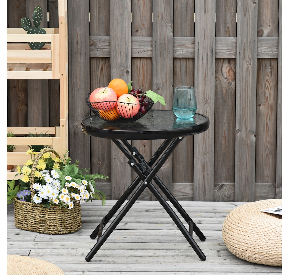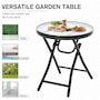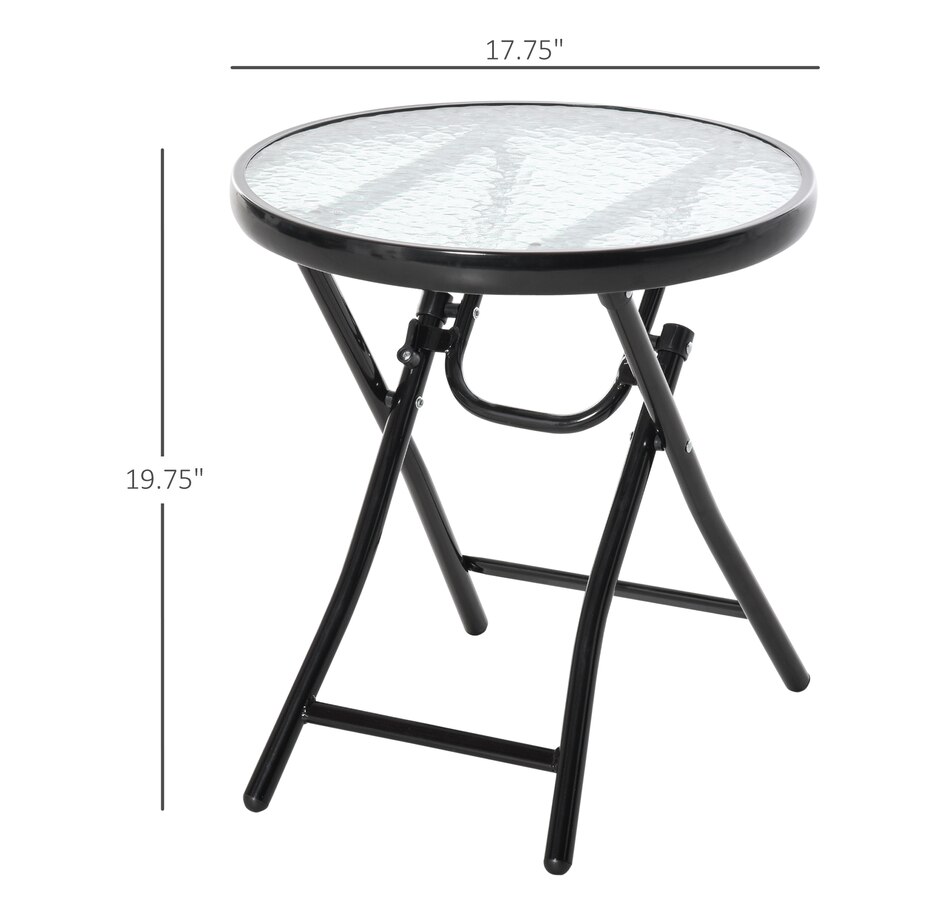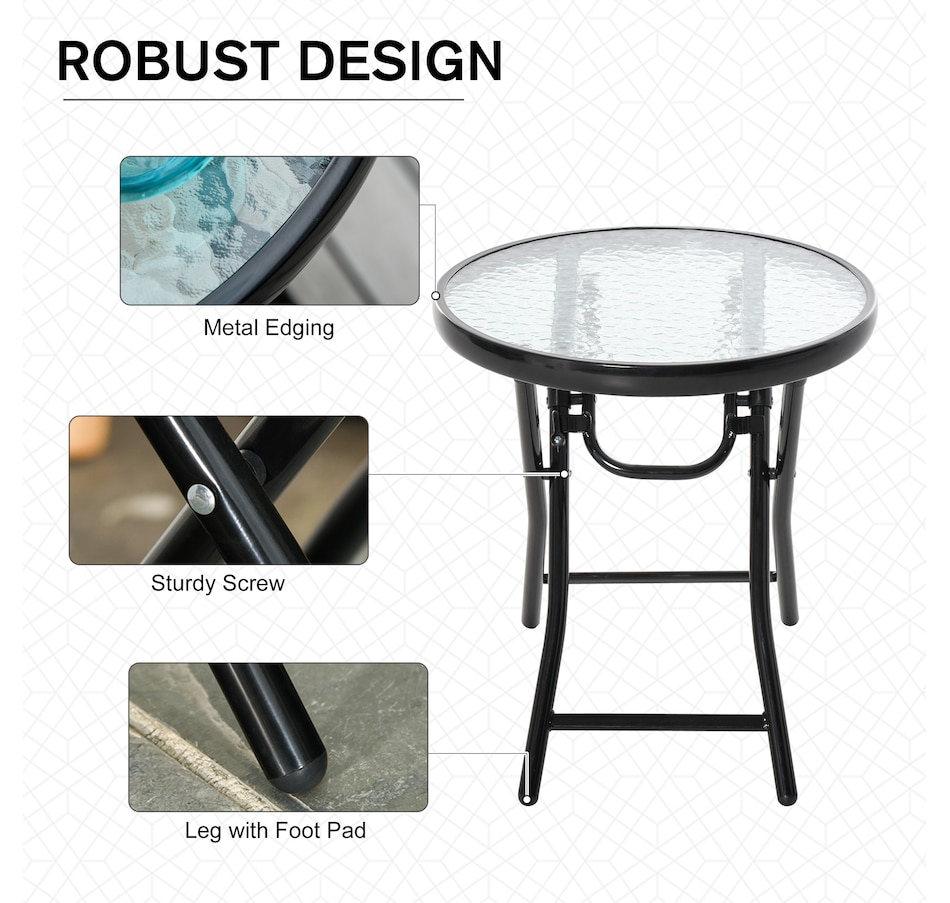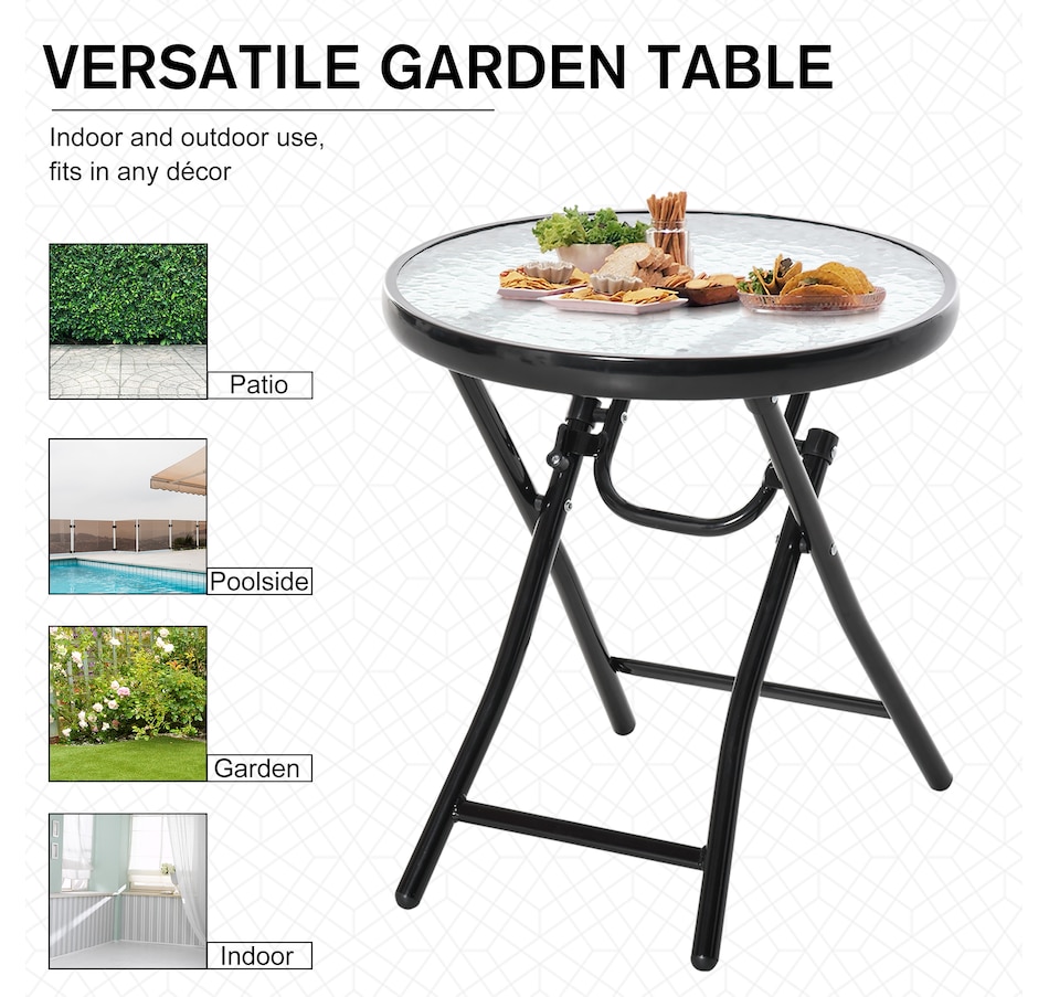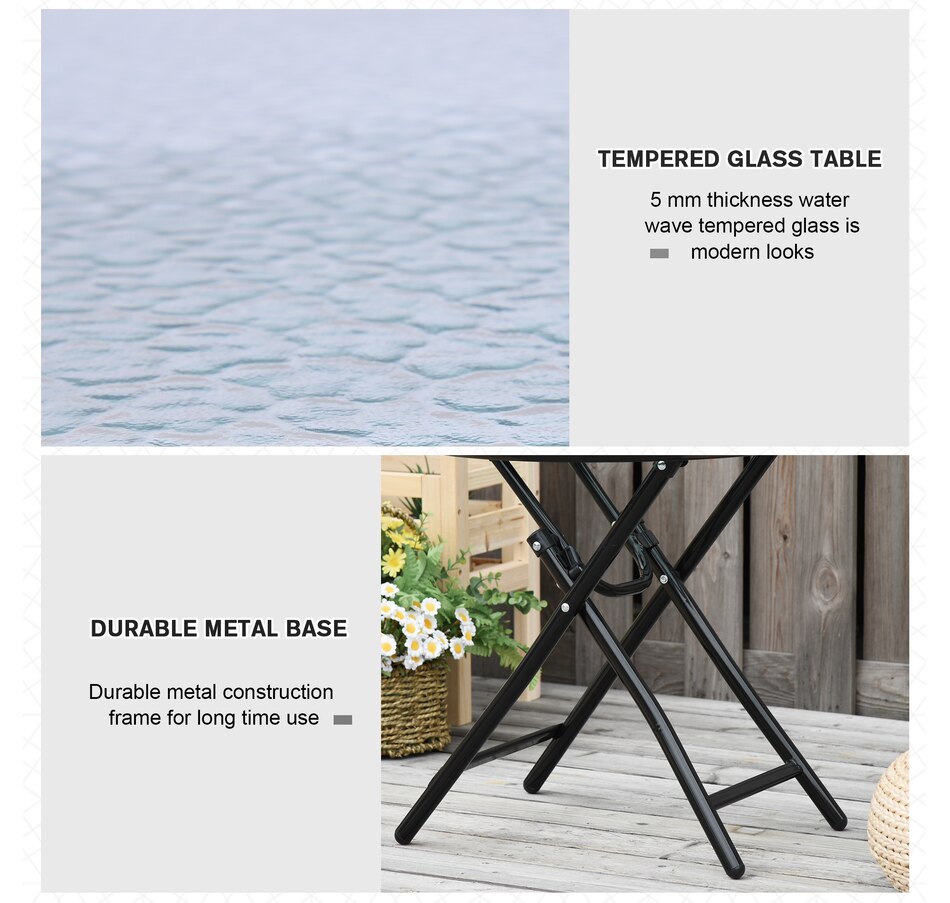 For a unique addition to your garden furniture, choose this beautiful outdoor patio table from Outsunny. Made with a robust and strong metal frame, it features a beautiful water ripple tempered glass table top which is stain resistant and easy to clean. With safety buckle to prevent accidental folding, increasing stability in use. It's suitable for dining and relaxing with friends elegantly all day long.