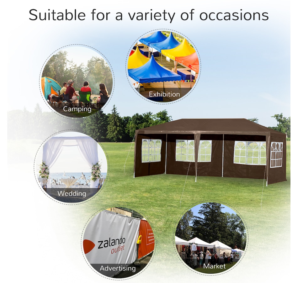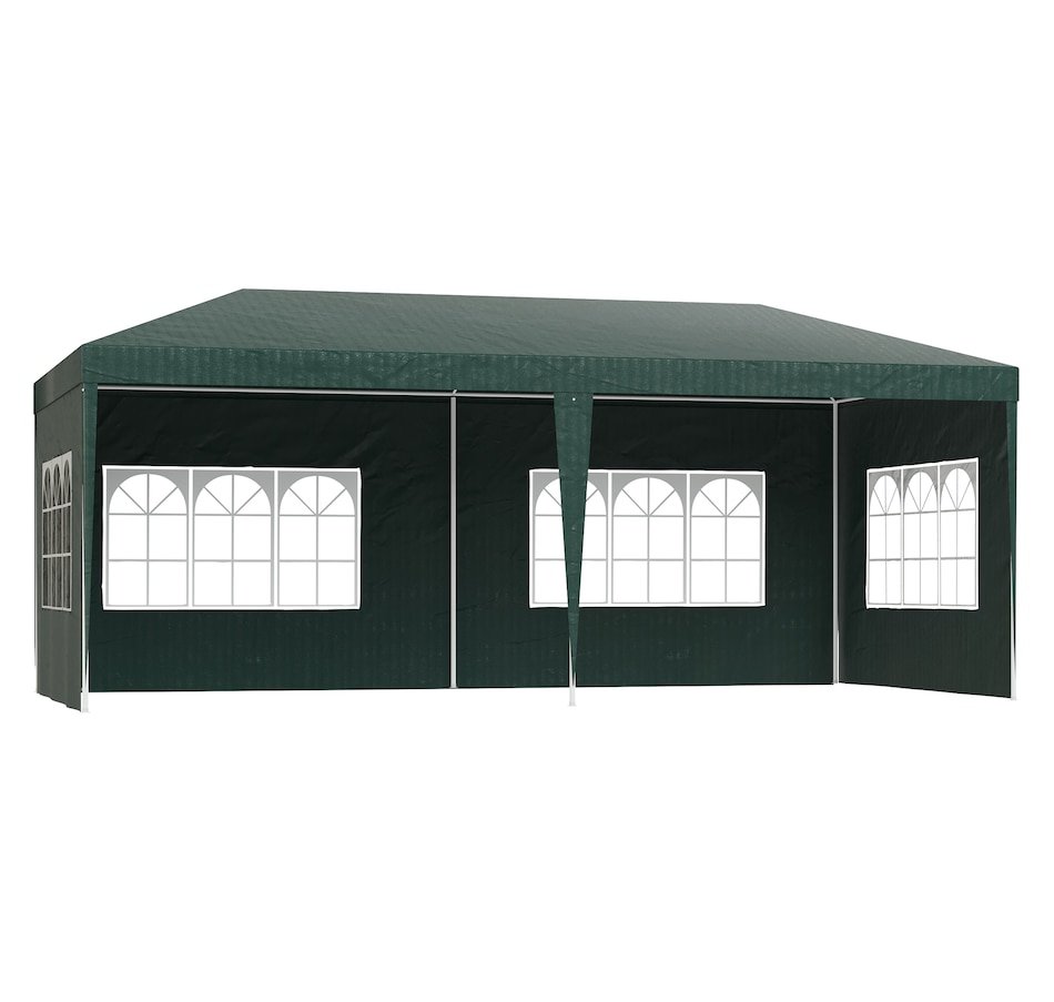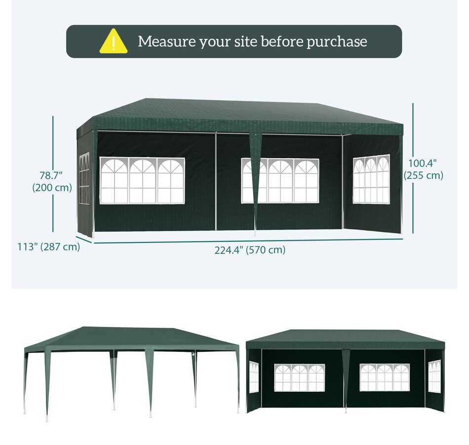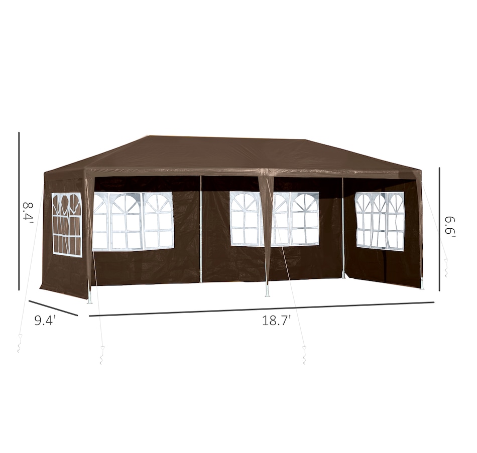 This new 9.4' x 18.7' outdoor canopy tent is a great outdoor shelter. It is ideal for car tent, family party, sport events, outdoor vendors and more. Rust free steel construction with quality polyethylene canopy, this backyard tent is more durable. Pull ropes and ground stakes are included for added stability, easy to set up and take down.