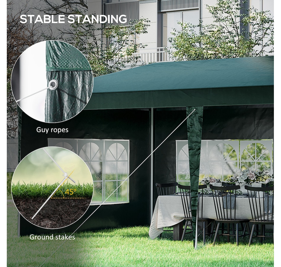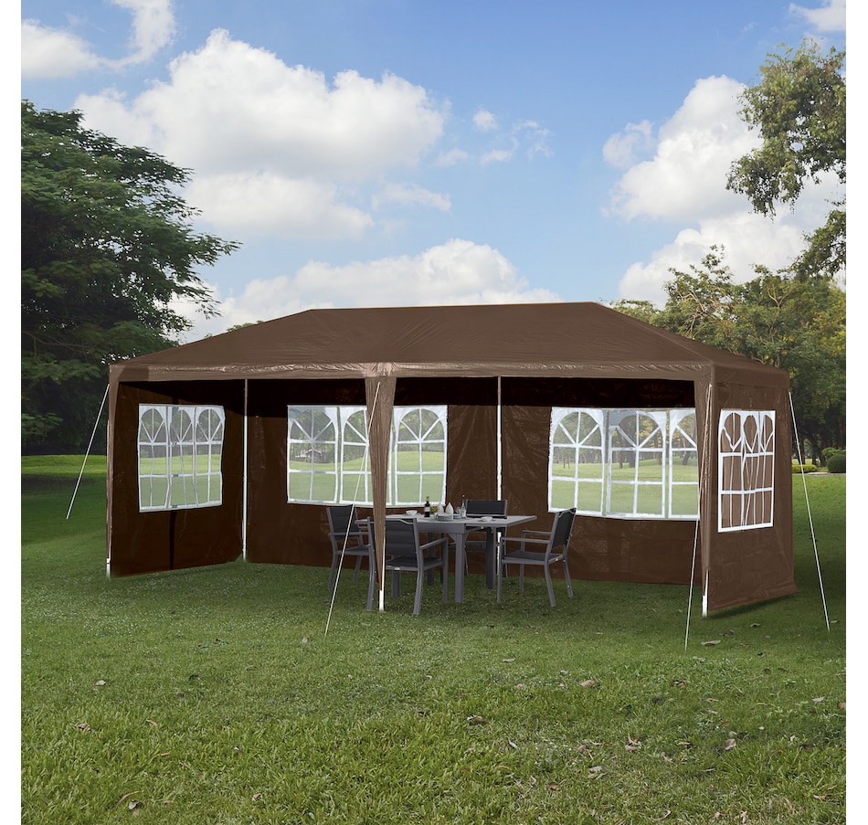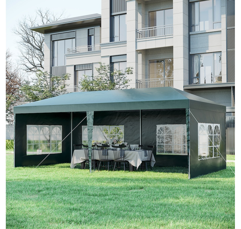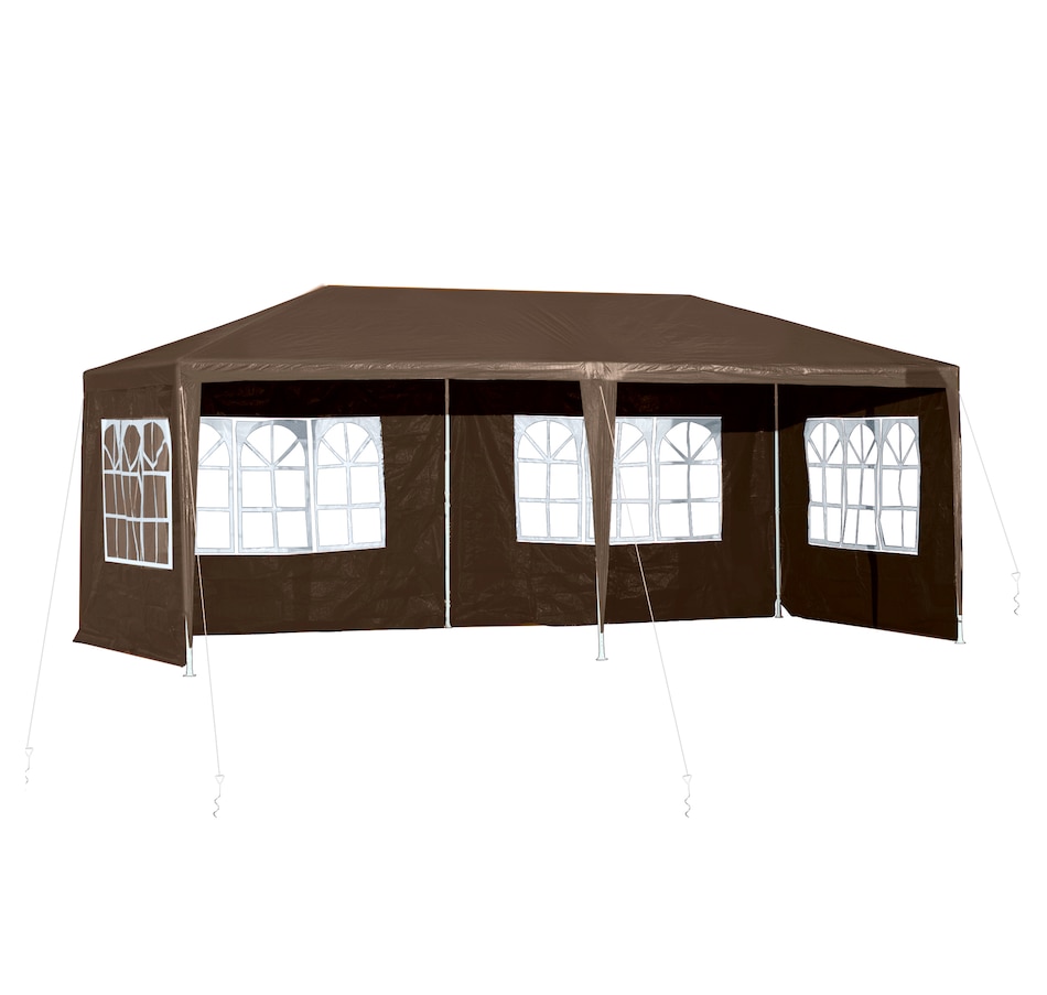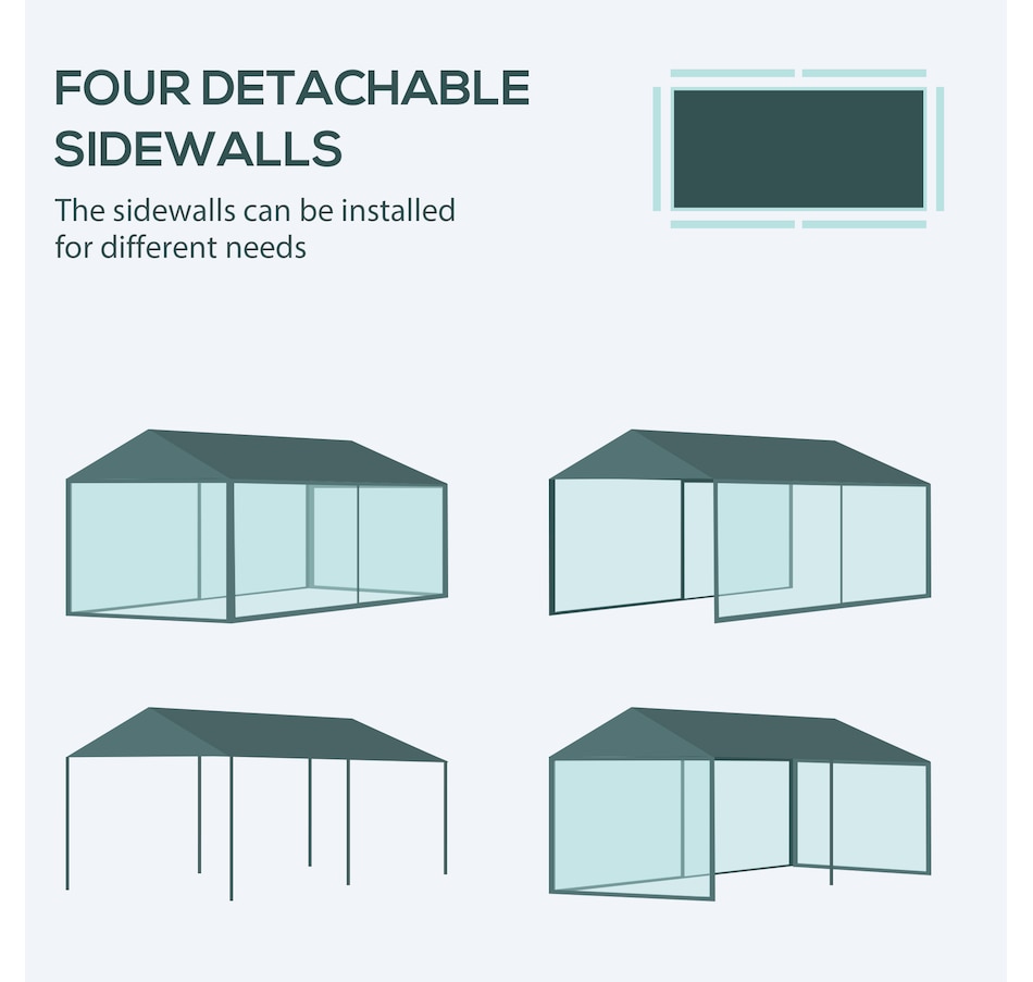 This new 9.4' x 18.7' outdoor canopy tent is a great outdoor shelter. It is ideal for car tent, family party, sport events, outdoor vendors and more. Rust free steel construction with quality polyethylene canopy, this backyard tent is more durable. Pull ropes and ground stakes are included for added stability, easy to set up and take down.