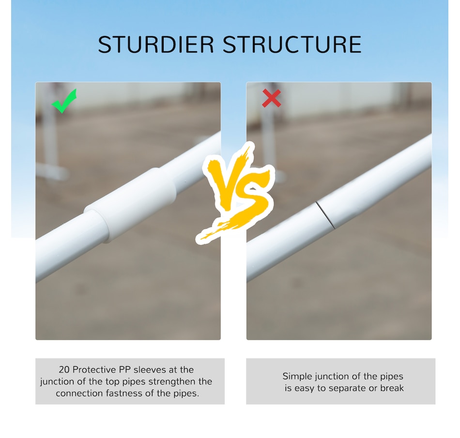● 20 protective PP sleeves at the junction of the top pipes enhance the pipe strength
