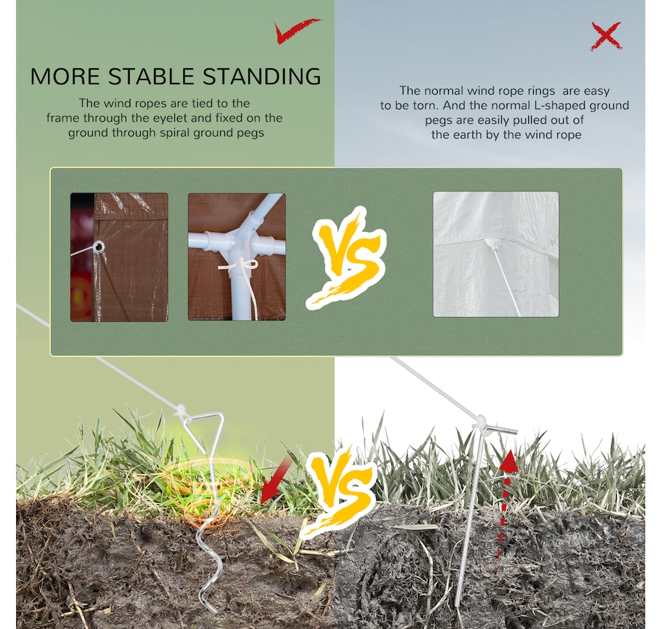 ● 6 pull ropes, 6 spiral ground pegs and 6 L-shaped ground pegs for extra stability