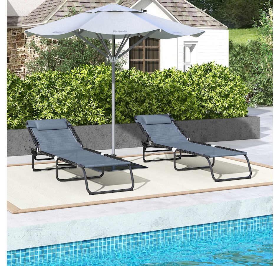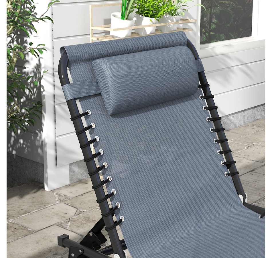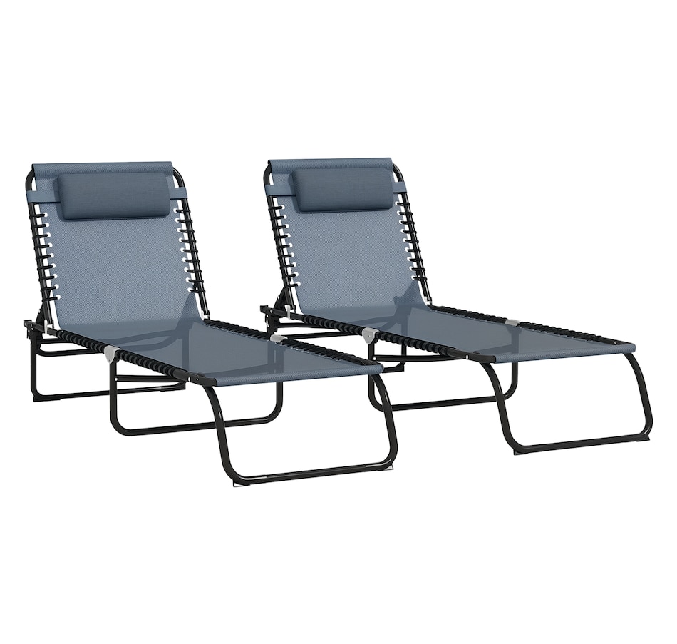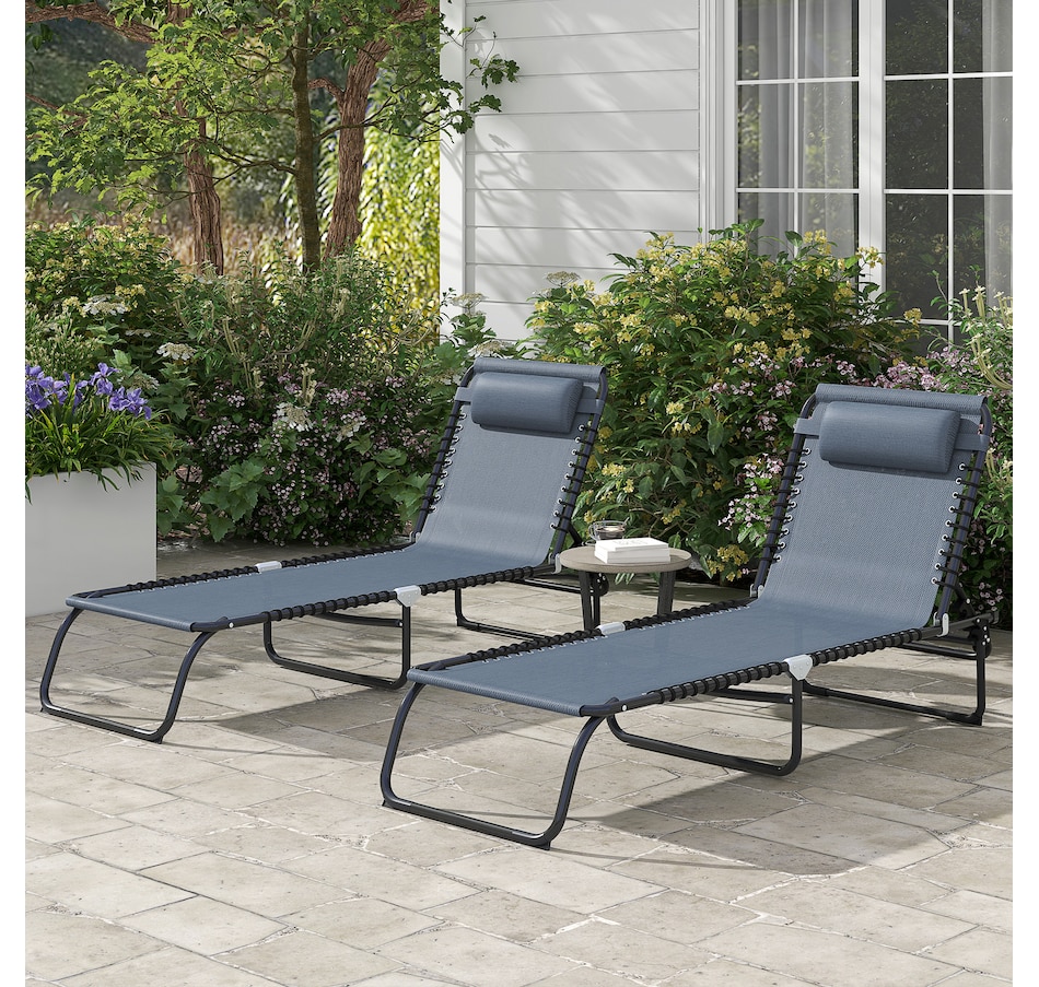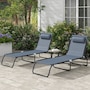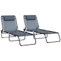 2 PCs Folding Lounge Chairs, Chaise Lounges with Headrest Grey