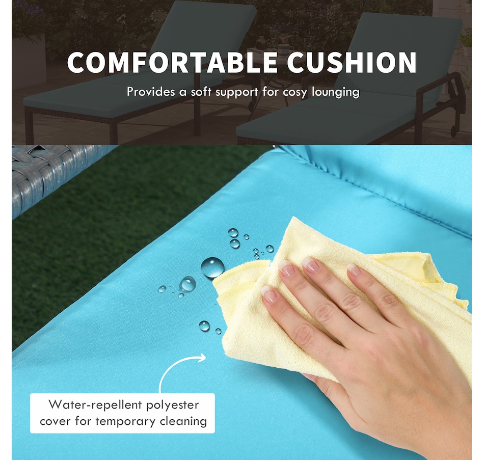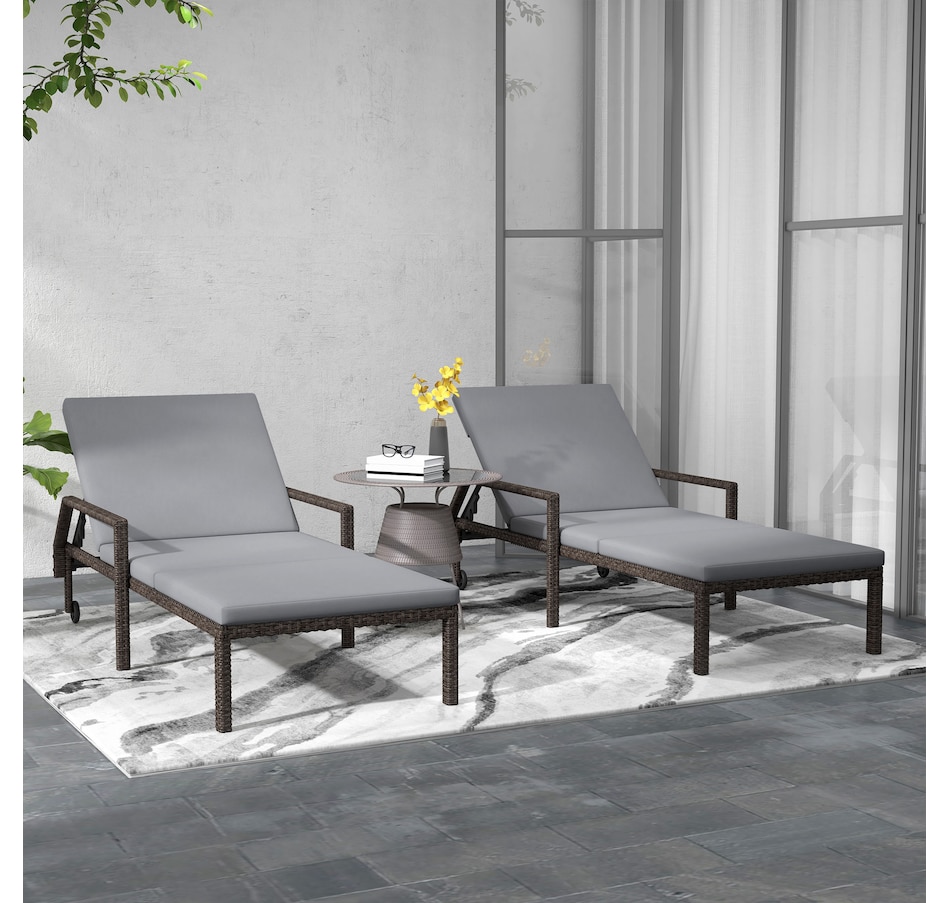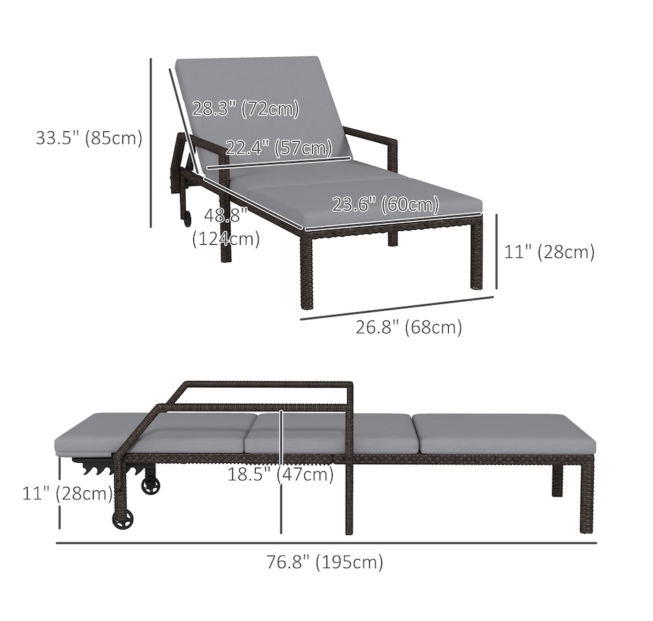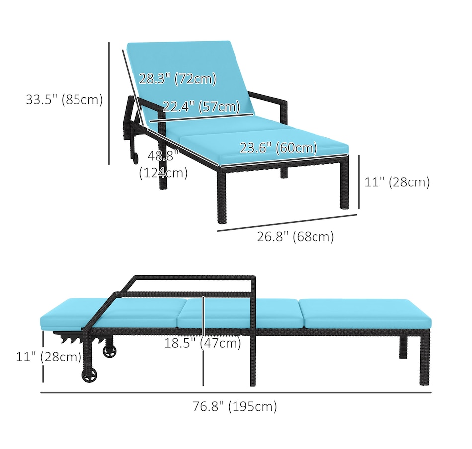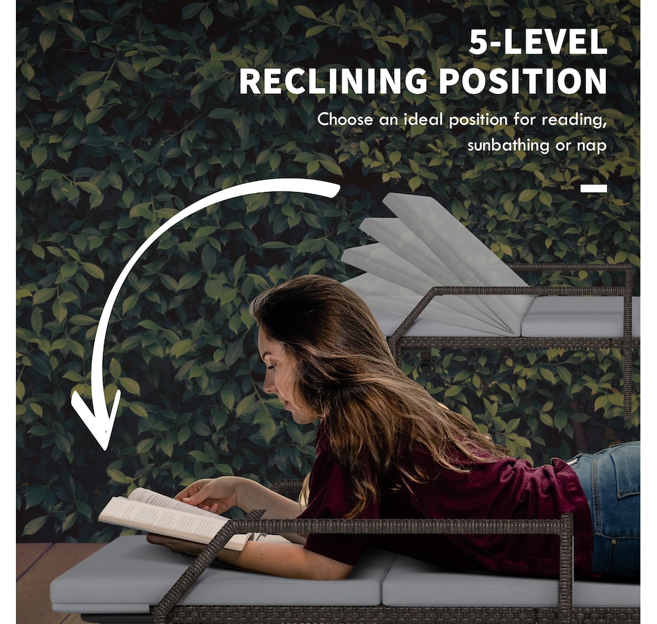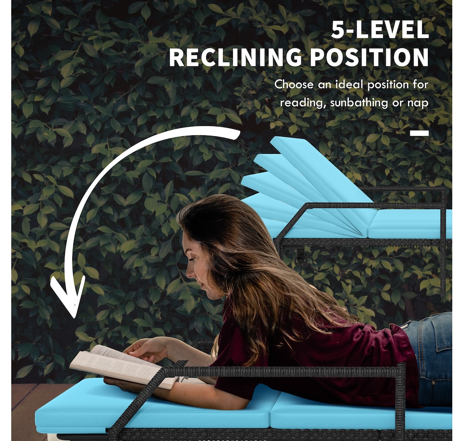 This patio chaise lounge set from Outsunny is stylish and can fit with any backyard decor. Constructed with all hand woven PE rattan wicker and a steel frame for durability. A 5-level adjustable backrest can match your body and provide relaxing and sleeping modes. With flexible wheels on both sides, the tanning chairs can be easily moved from place to place as you like. Ensuring you will feel relaxed while sunbathing with our wicker pool lounger.