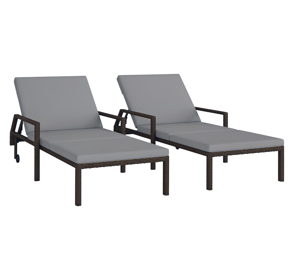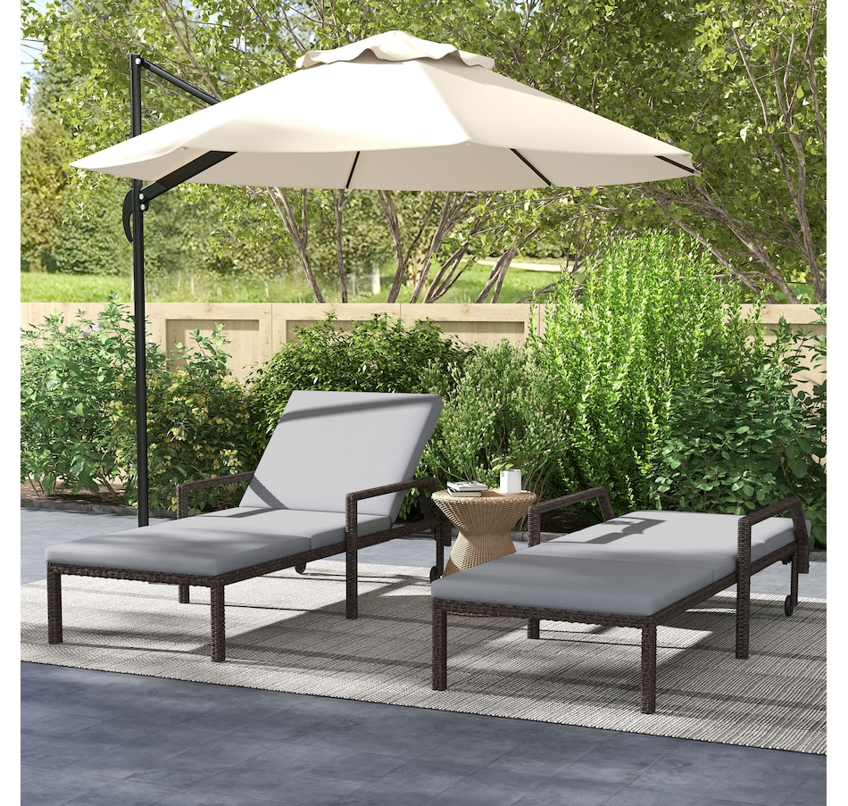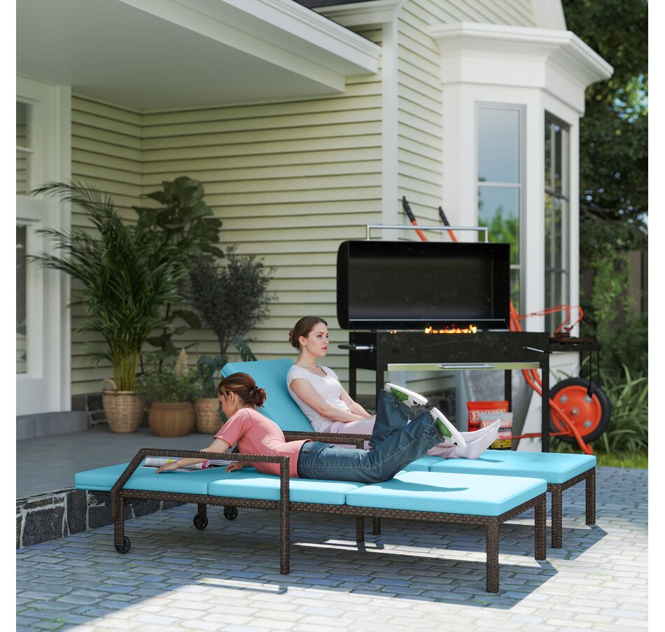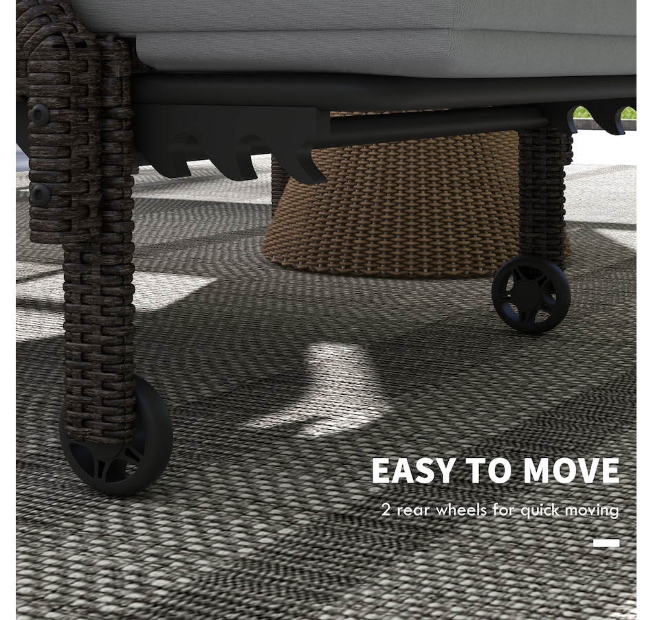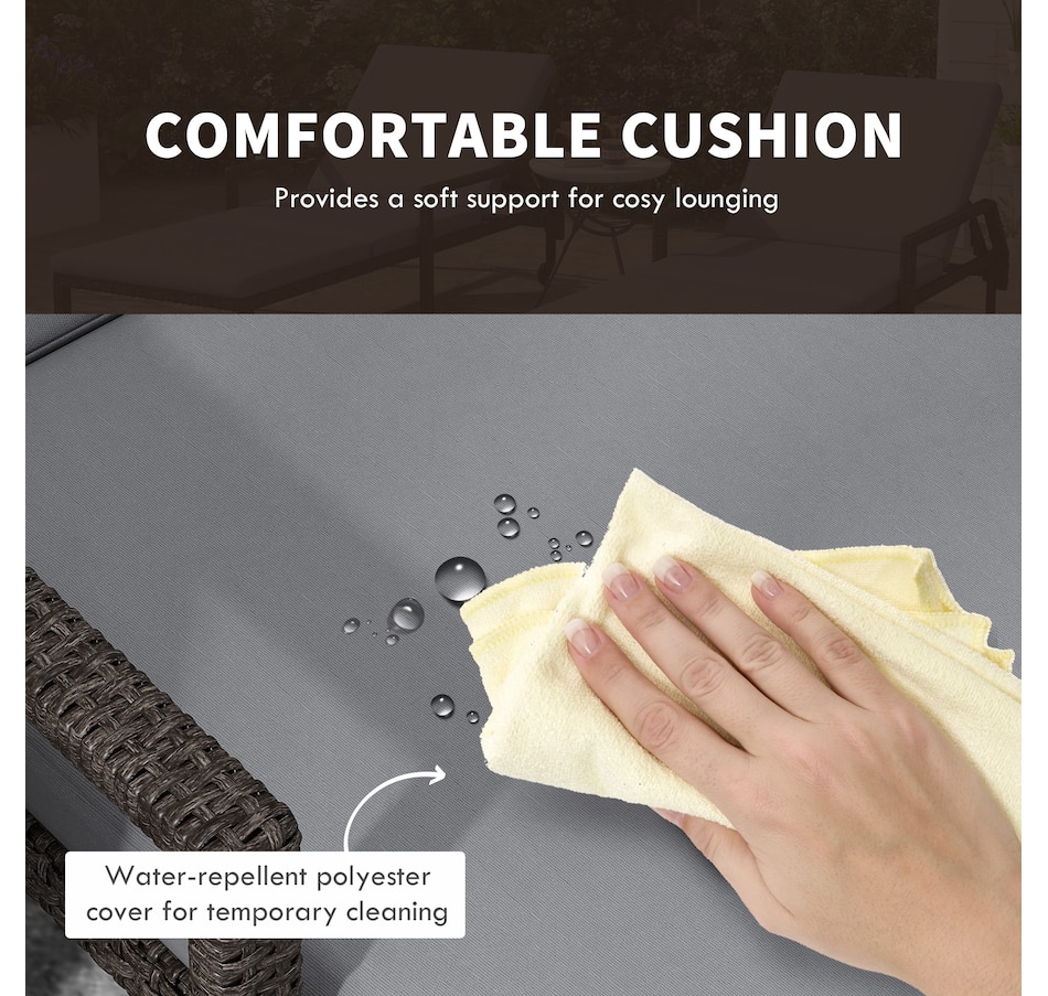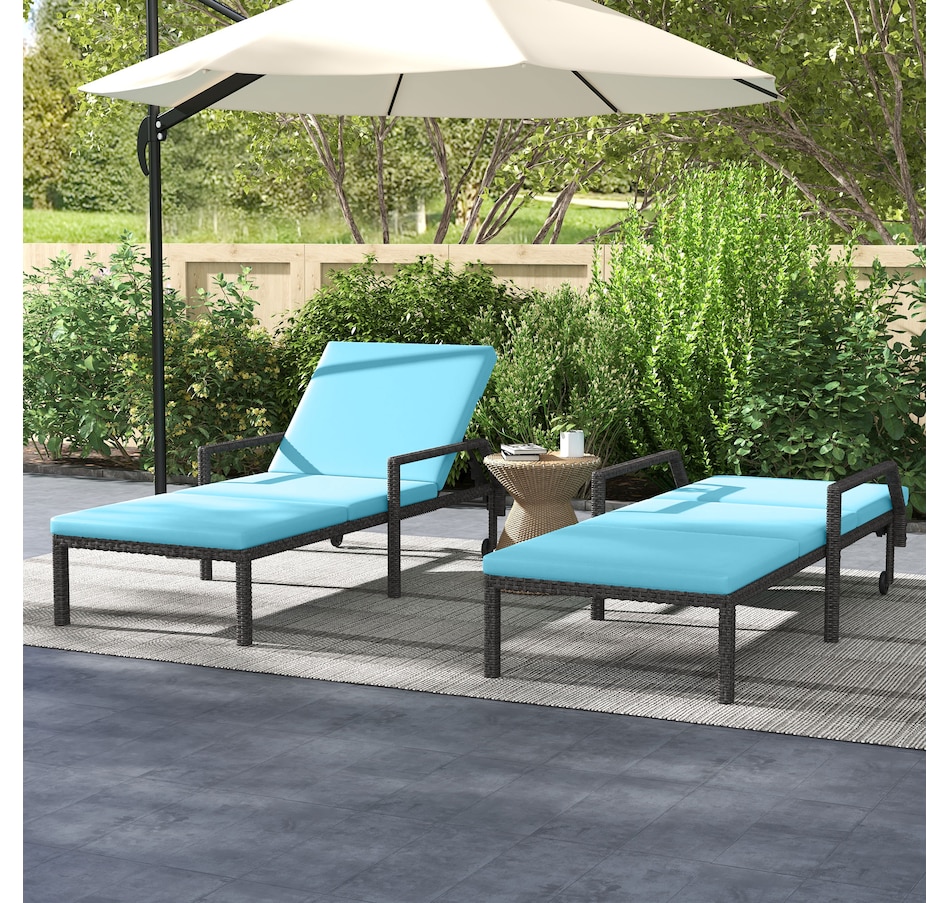 This patio chaise lounge set from Outsunny is stylish and can fit with any backyard decor. Constructed with all hand woven PE rattan wicker and a steel frame for durability. A 5-level adjustable backrest can match your body and provide relaxing and sleeping modes. With flexible wheels on both sides, the tanning chairs can be easily moved from place to place as you like. Ensuring you will feel relaxed while sunbathing with our wicker pool lounger.