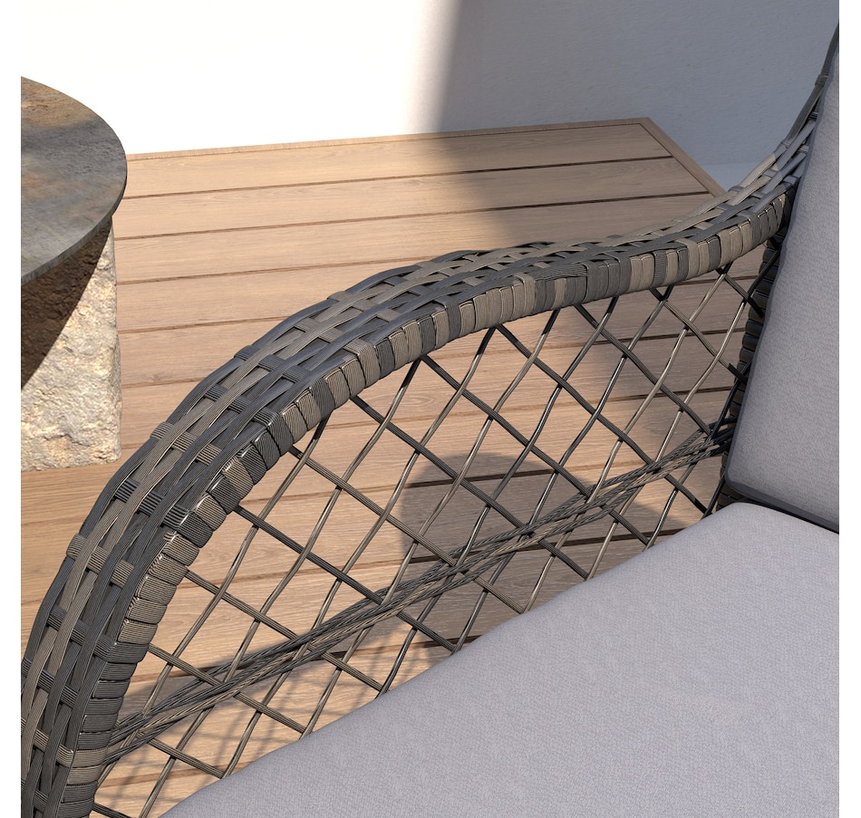 ● Powder coated steel frame wrapped in plastic wicker resists rust and UV;