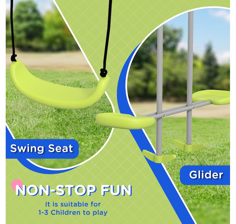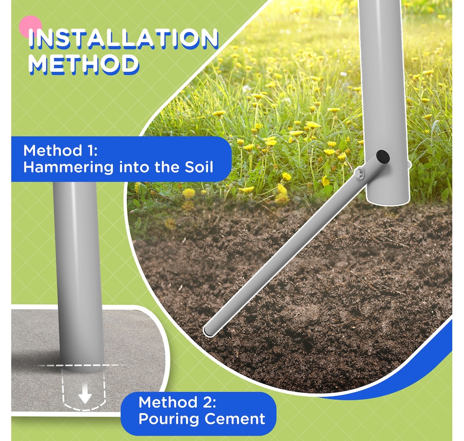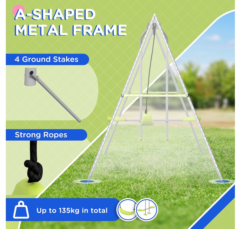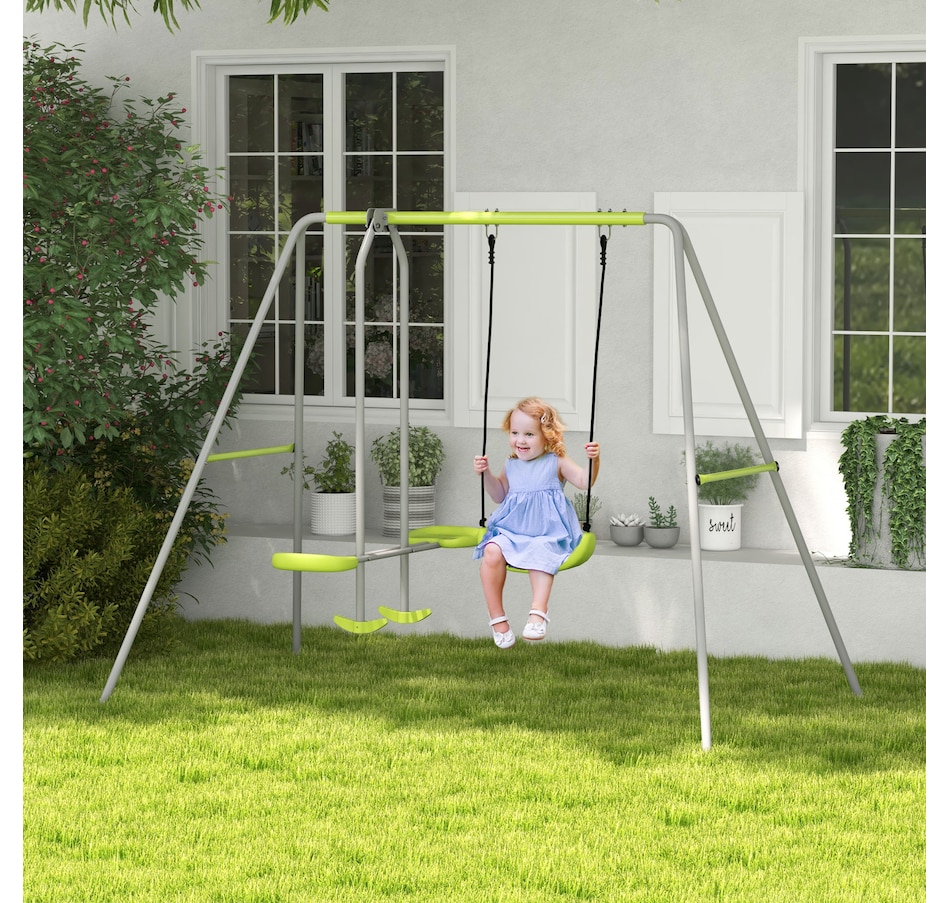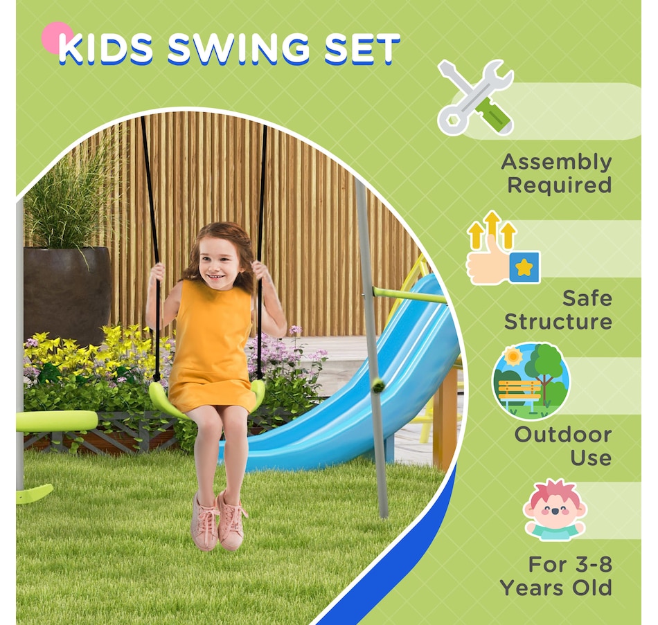 Turn your garden into an exciting playground with the Outsunny kids swing set. Packed with an array of features, this swing set offers endless fun for children. With lots of space, they can play and enjoy together in a safe surroundings. The steel frame and ground stakes ensure stability and security, keeping the set firmly anchored to the ground.