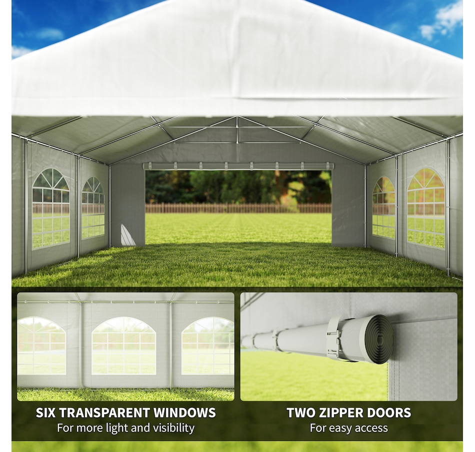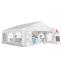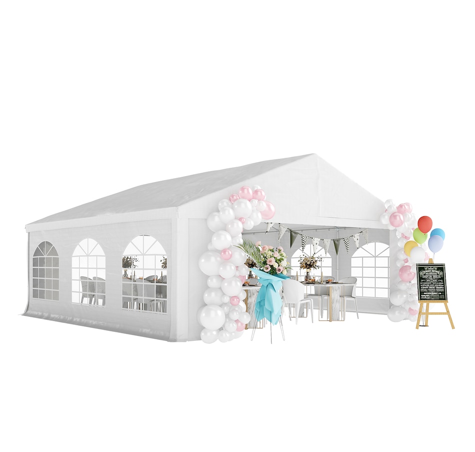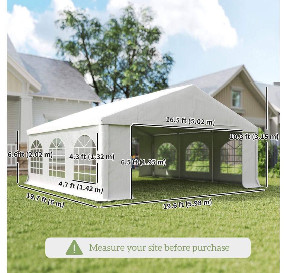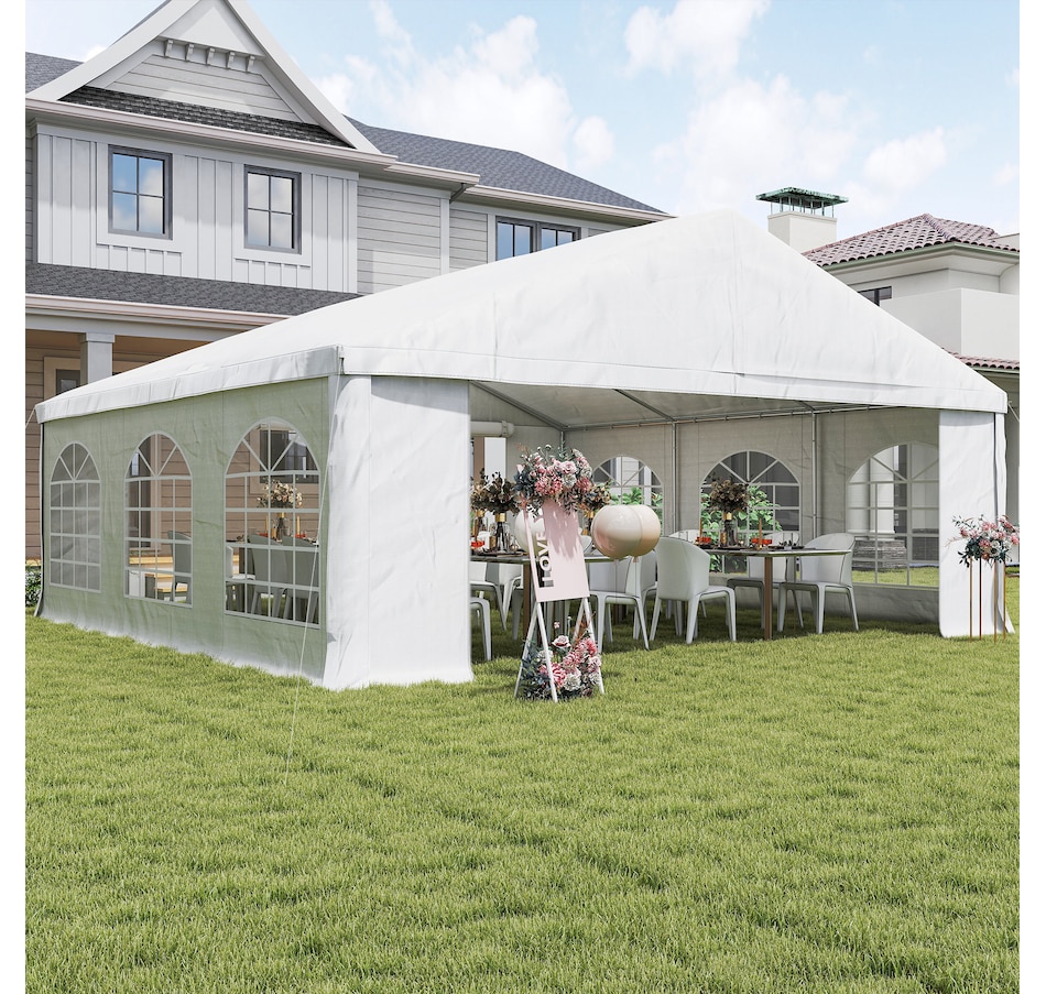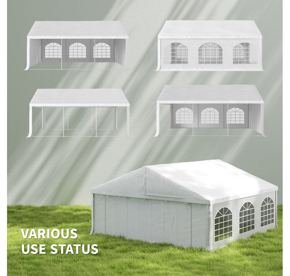 Let's hold the party in your backyard with Outsunny's outdoor tent canopy without worrying about the weather's impact. Constructed with a heavy-duty and rust-resistant galvanized steel frame, the tent for a wedding is of superior strength. The high-density, water-resistant, and UV-resistant PE fabric is easy to wash. It features a removable sidewall, zippered doors, and Plastic windows for excellent cross ventilation. Bring Outsunny's canopy tent back home and enjoy the great fun of the party!
