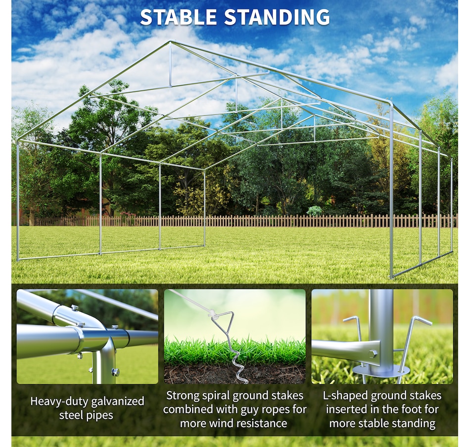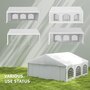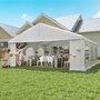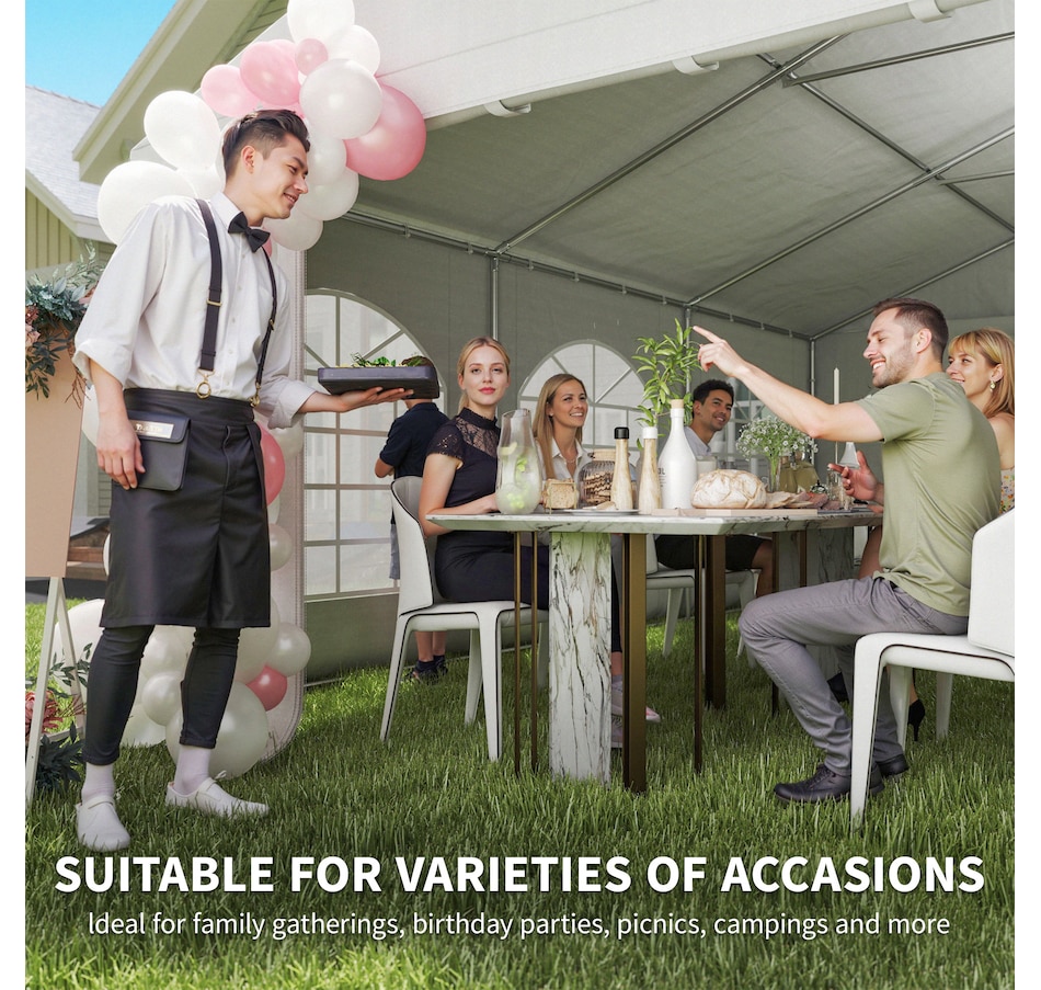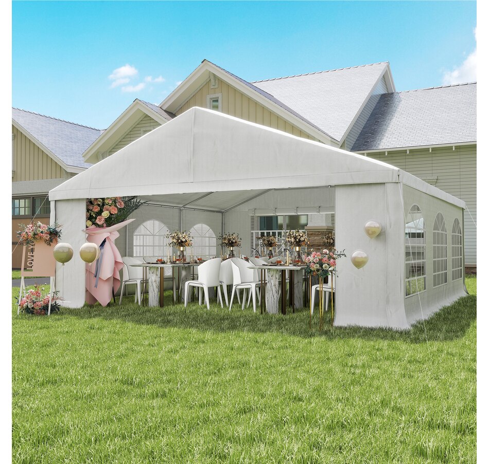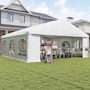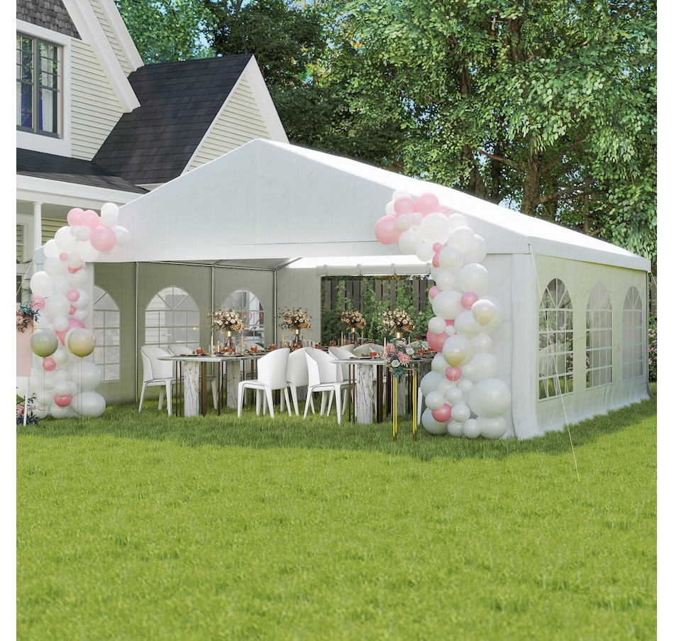 Let's hold the party in your backyard with Outsunny's outdoor tent canopy without worrying about the weather's impact. Constructed with a heavy-duty and rust-resistant galvanized steel frame, the tent for a wedding is of superior strength. The high-density, water-resistant, and UV-resistant PE fabric is easy to wash. It features a removable sidewall, zippered doors, and Plastic windows for excellent cross ventilation. Bring Outsunny's canopy tent back home and enjoy the great fun of the party!