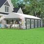 The deluxe gazebo party tent is a fantastic, simple setup of outdoor shelter. It is great for a range of uses from family parties, barbeques, craft fairs and more. Constructed by a heavy duty steel frame and PE covers. Sidewalls are with large church style windows for maximum light and viewing and equipped with zippered doors for easy access. Ropes and stakes make your tent extra stable.