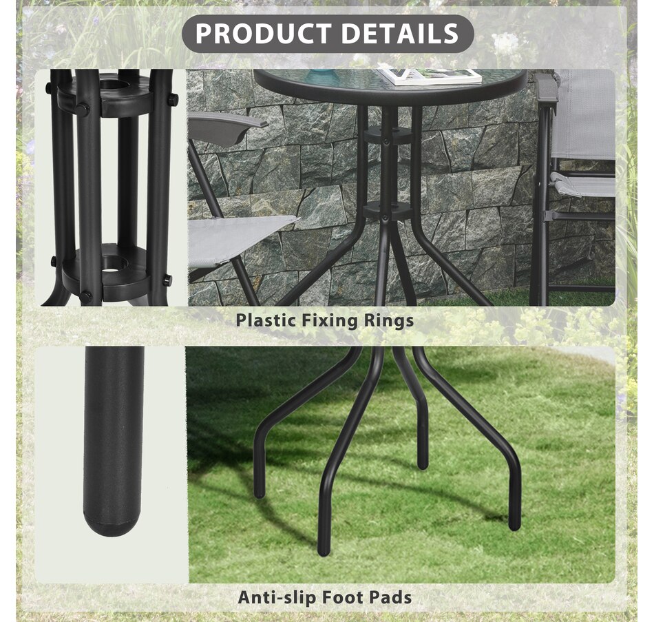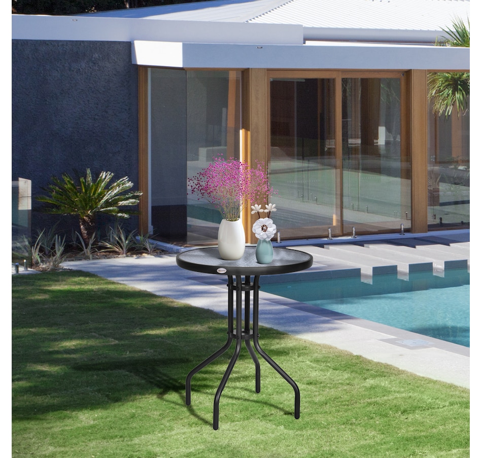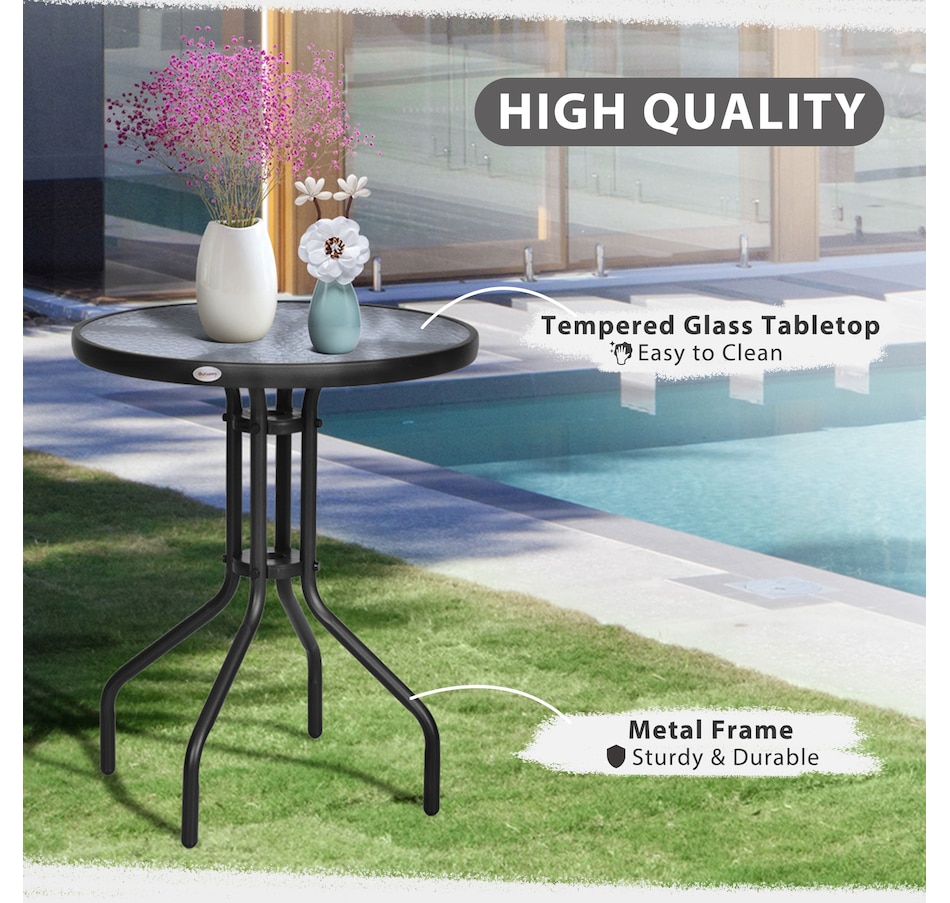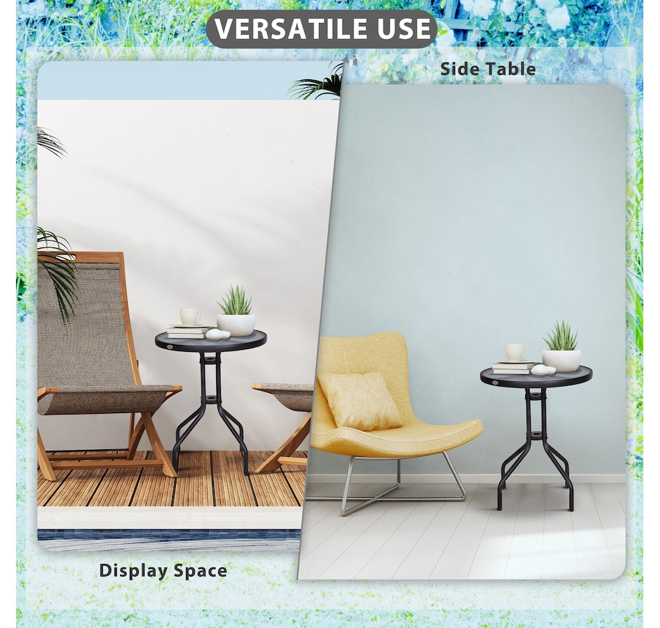 This new outdoor patio coffee table from Outsunny is perfect for your outdoor space which can surprisingly highlight your patio, garden or other outdoor space. Made of steel frame and tempered glass top, it can ensure years of reliable use. With this elegant small patio table, you can create the perfect relaxing and entertainment environment in your own outdoor space!