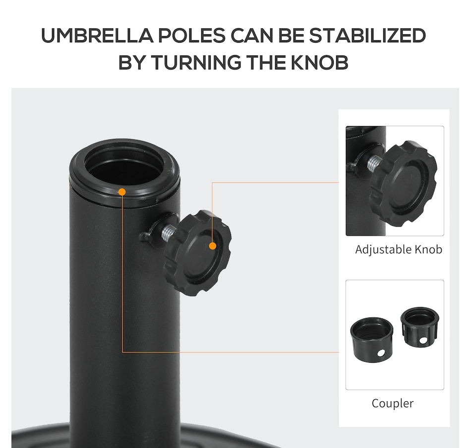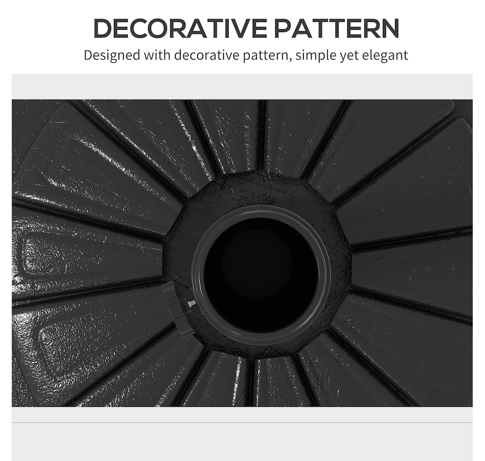 Enjoy the outdoor lifestyle with this attractive Outsunny patio umbrella stand. It is designed with a rustic pattern on its surface that will go great in your garden or in your patio area. Just combine your umbrella with a table and chairs to create a relaxing oasis. Our weighted umbrella stand holds your umbrella securely and evenly in place, so the umbrella can provide much-needed shade. Enjoy your days under an umbrella with this beautiful outdoor umbrella base.