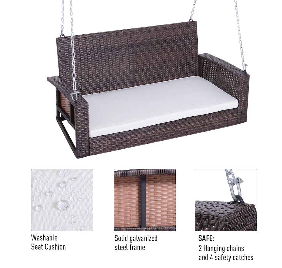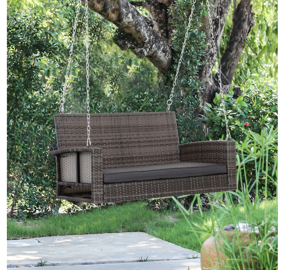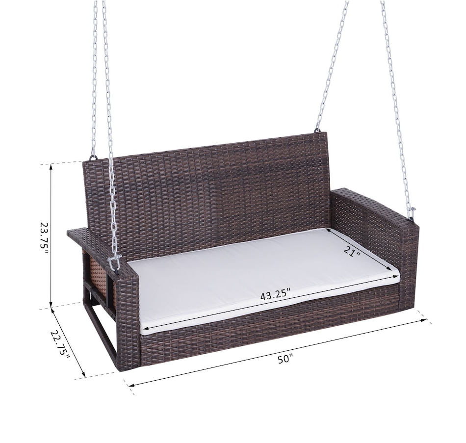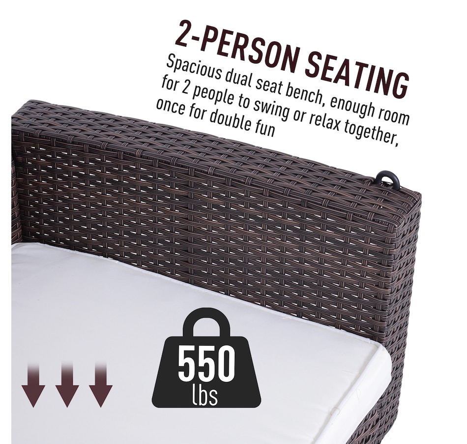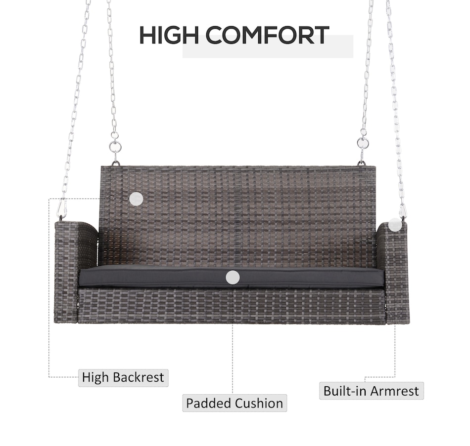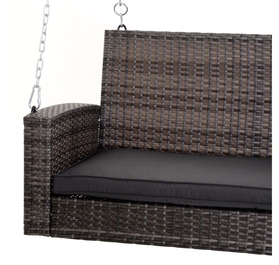 Enjoy the beautiful weather with your friends and family by relaxing on our Outsunny 2 Person Outdoor Wicker Porch Swing Bench. Have a seat and let the soothing rocking sway you gently back and forth. The seats are curved for an incredibly comfortable sitting angle, complete with armrests for support that do the same. Extra heavily padded seat is included to complete your sitting experience. So sit back, relax and let the summer breeze take you away.