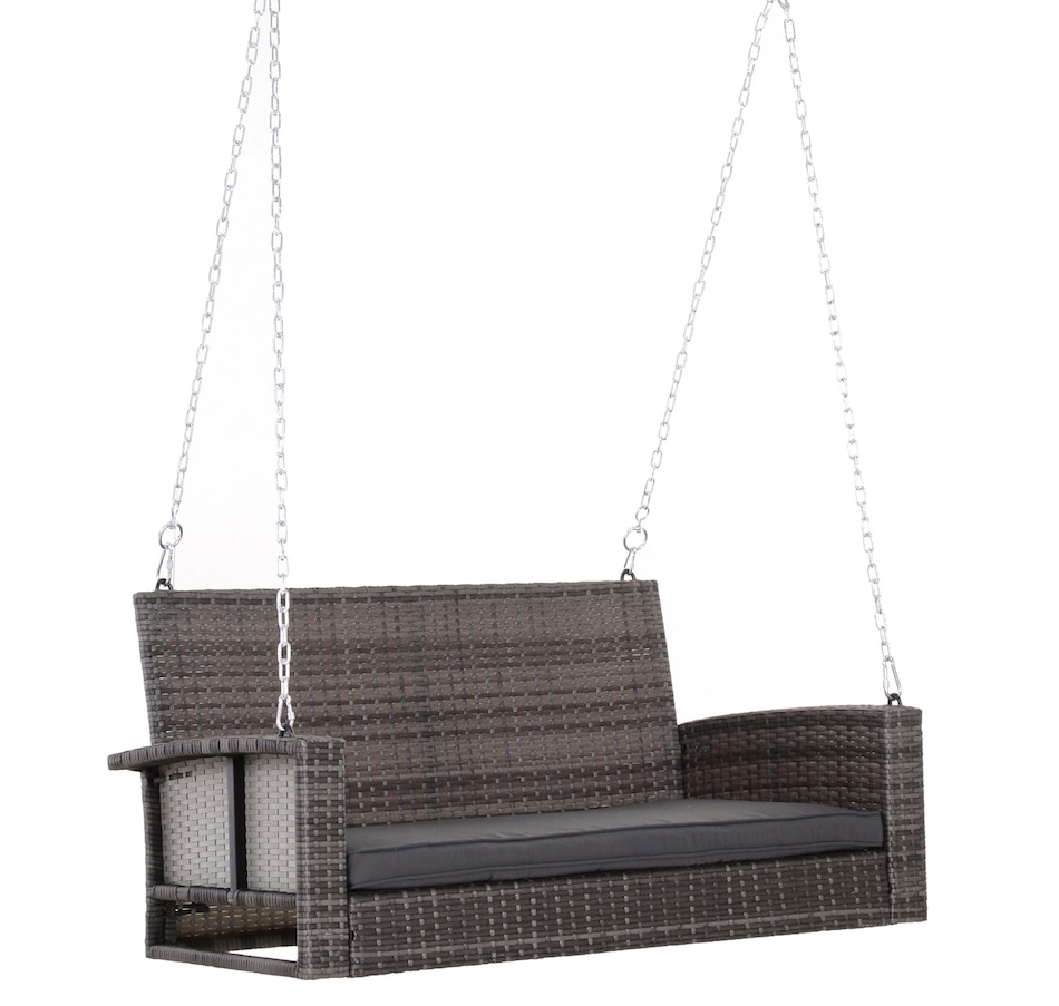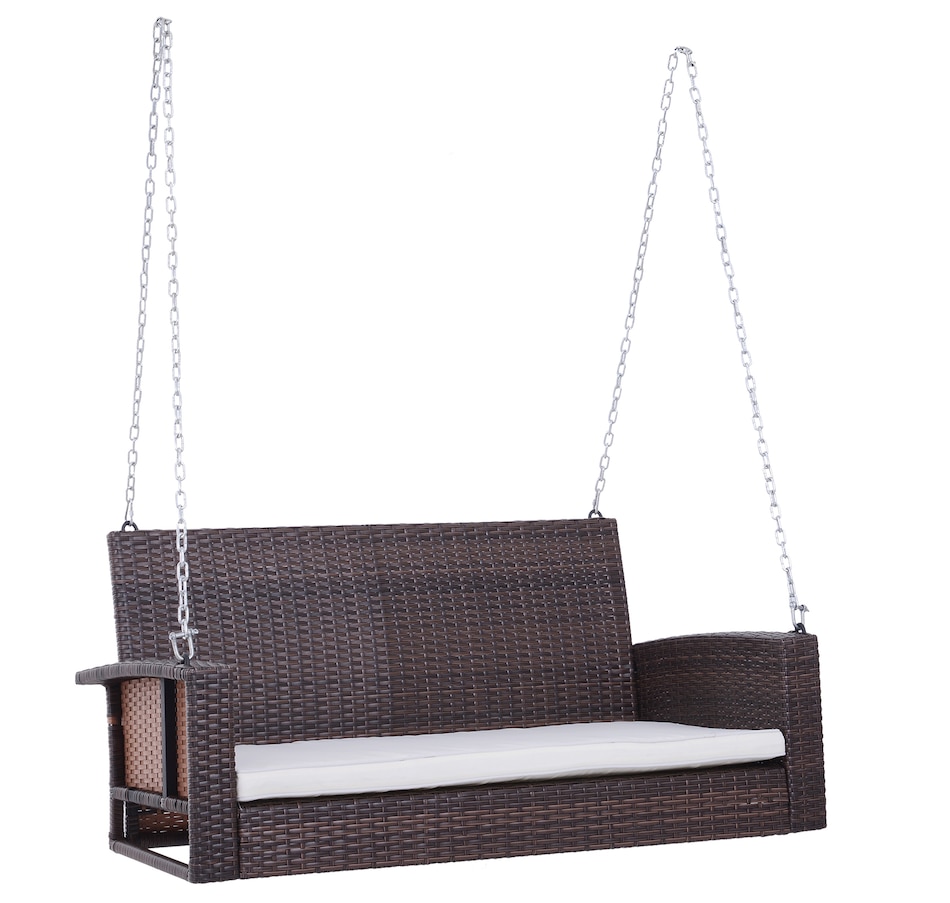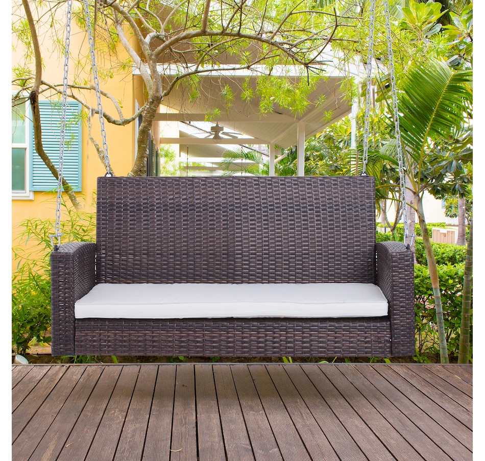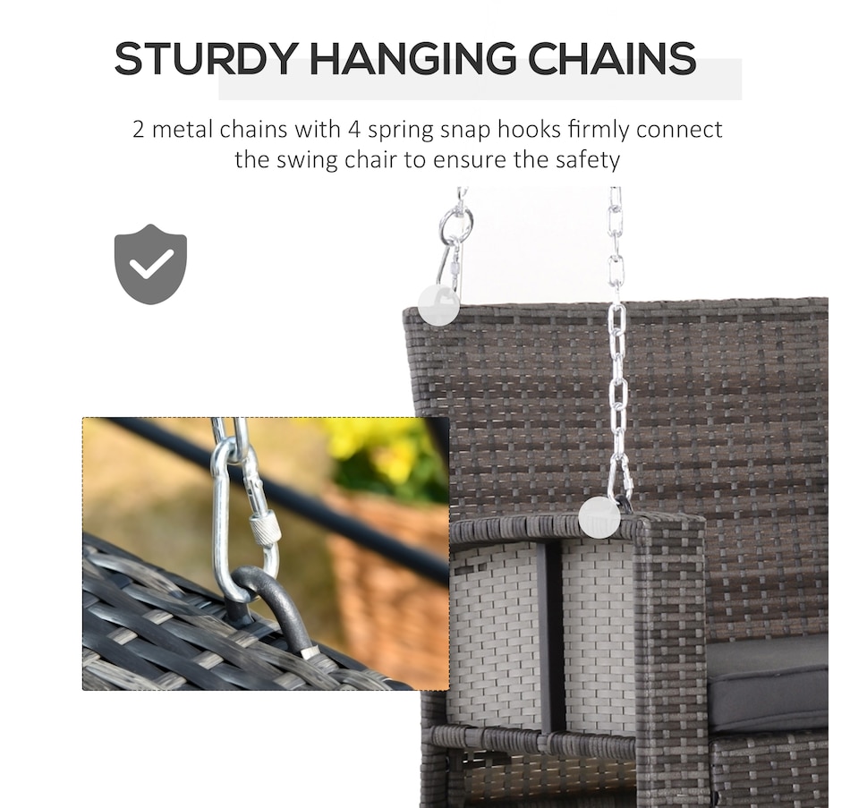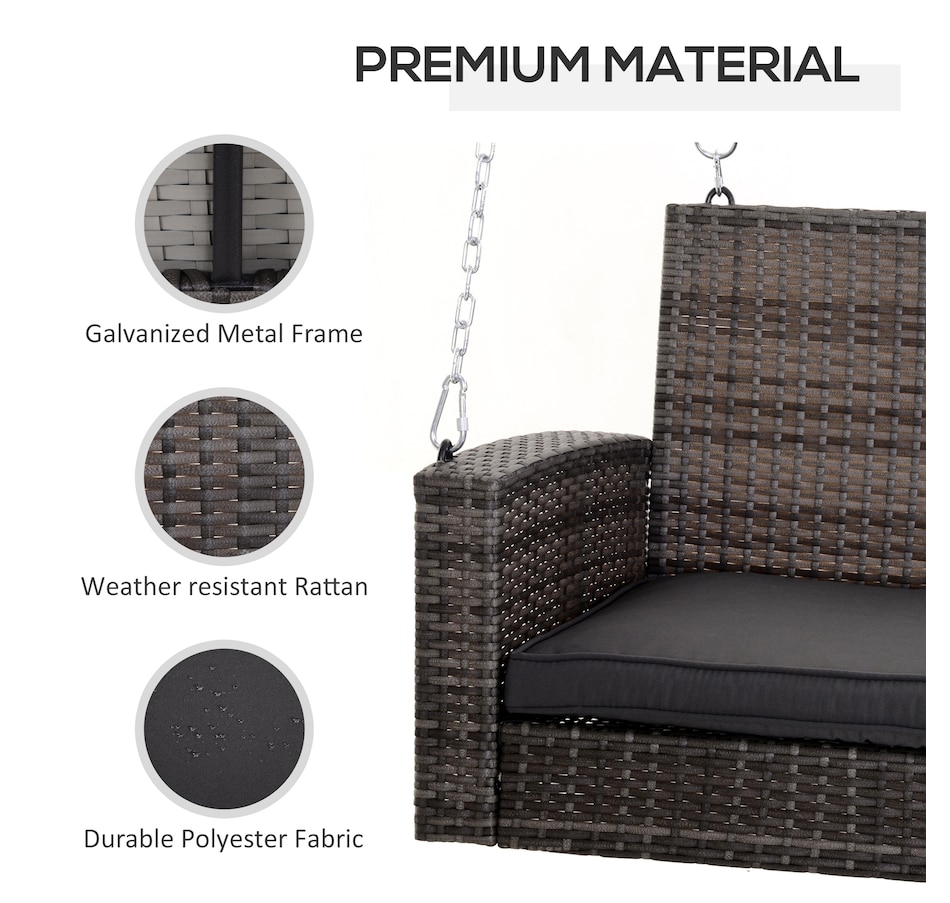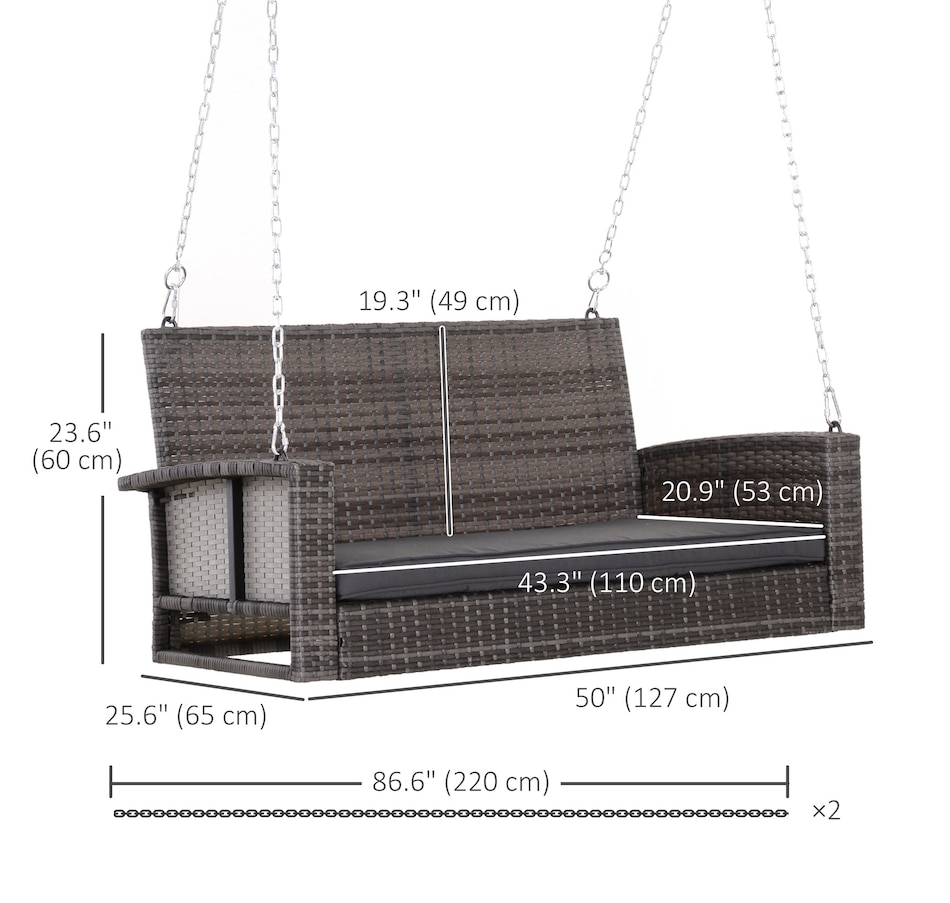 Enjoy the beautiful weather with your friends and family by relaxing on our Outsunny 2 Person Outdoor Wicker Porch Swing Bench. Have a seat and let the soothing rocking sway you gently back and forth. The seats are curved for an incredibly comfortable sitting angle, complete with armrests for support that do the same. Extra heavily padded seat is included to complete your sitting experience. So sit back, relax and let the summer breeze take you away.