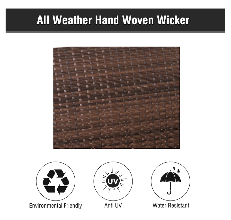 ● Weather-resistant wicker material and elegant dark coffee finish adds an elegant touch to your patio