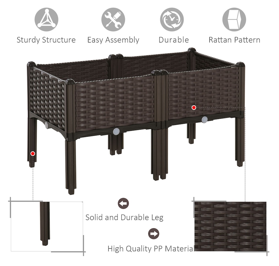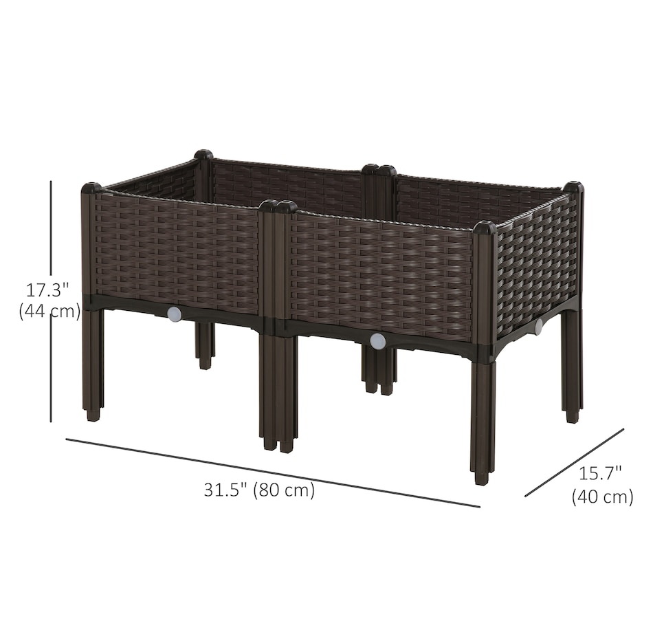 The 2-piece garden boxes outdoor raised are a great way to grow plants and vegetables at home. Ideal for small patios, decks, balconies, condos, apartments, and more. These raised planters are lightweight and durable. The PP material lets this item serve you for a long time. This elevated planters let you garden in comfort alleviating the need to bend or stoop while protecting your plants from uninvited pests. Free combination of the herb gardens set suits your gardening requirements better.