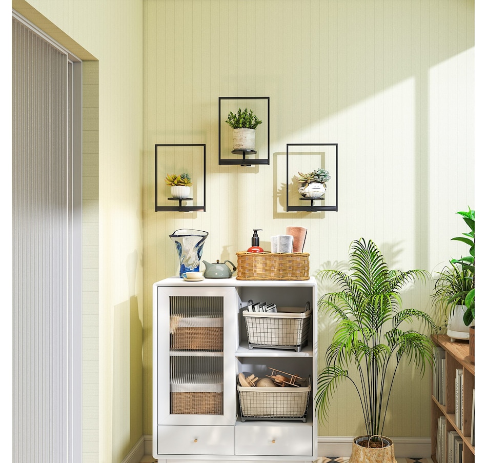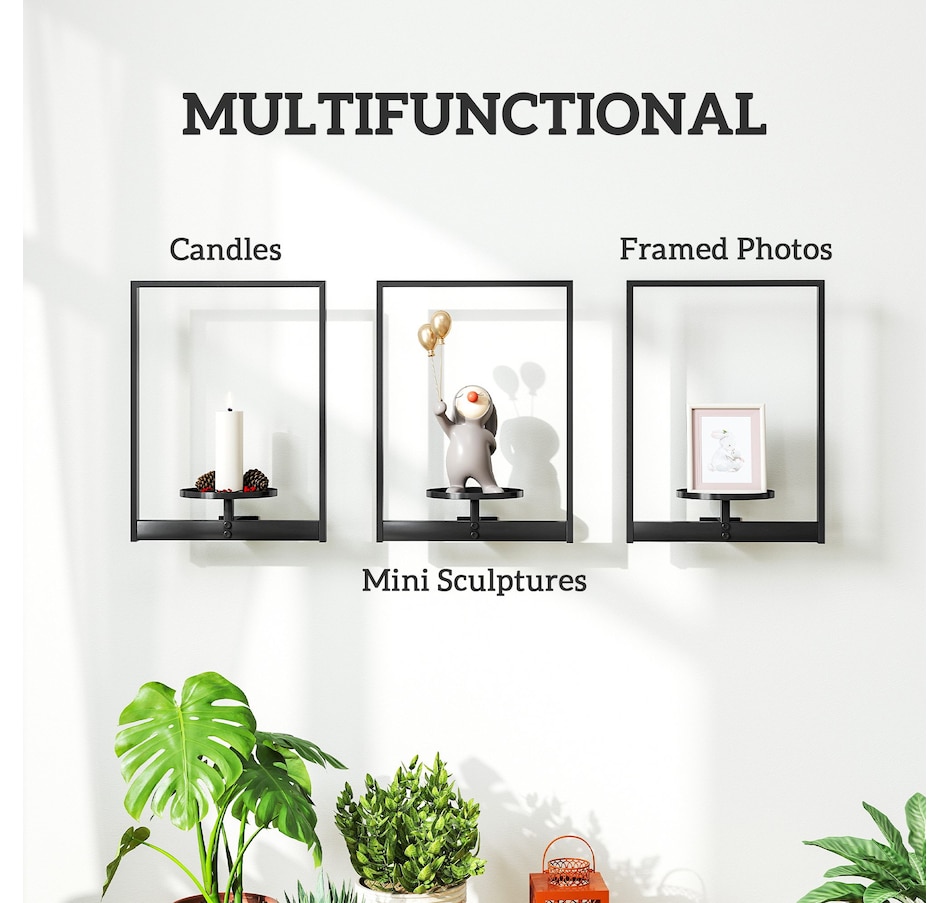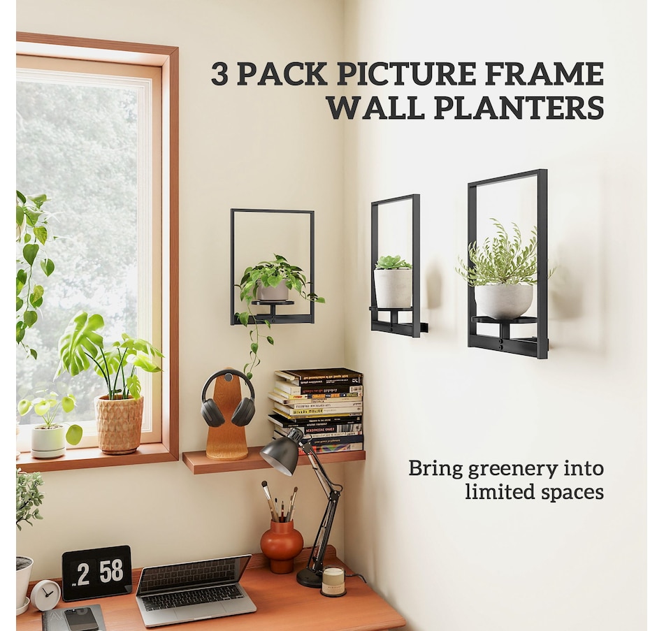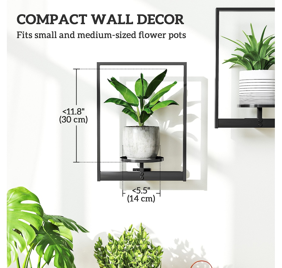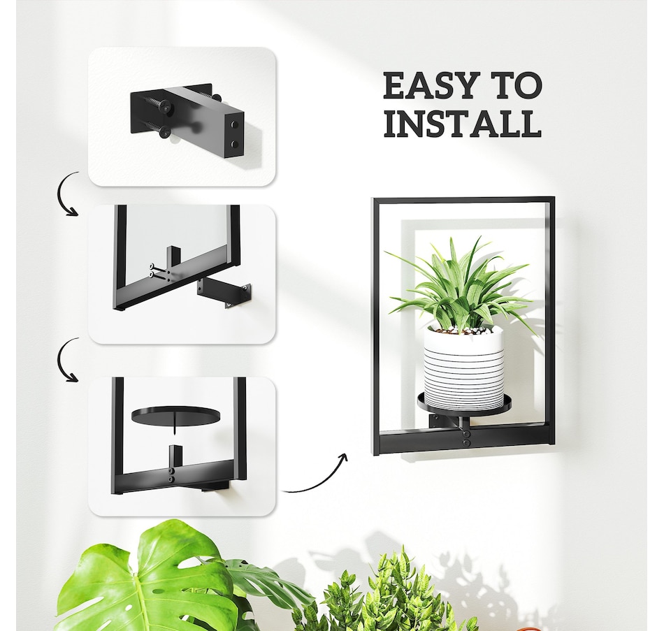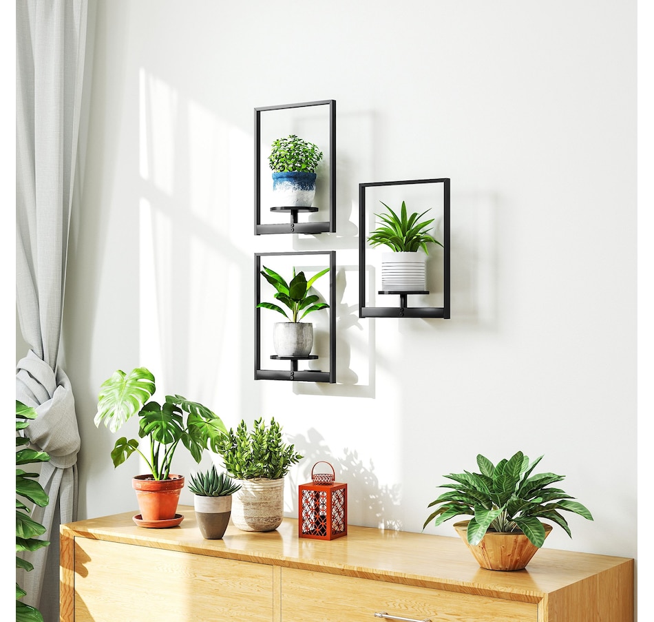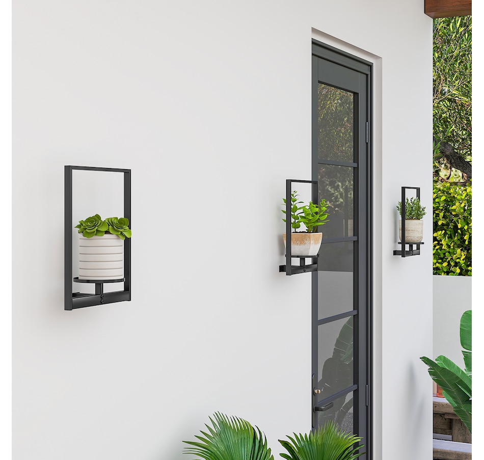 Elevate your space with this Outsunny 3-pack wall hanging planter set, blending modern decor with practical plant display. Each powder-coated metal plant stand is stable, rust-resistant, and compact enough for small spaces. Easy to install on brick, concrete, or wood walls, it fits 5.5" pots and works especially well with plants under 11.8" tall. Suitable for showcasing greenery, candles, photos, and other decor accents.Features: