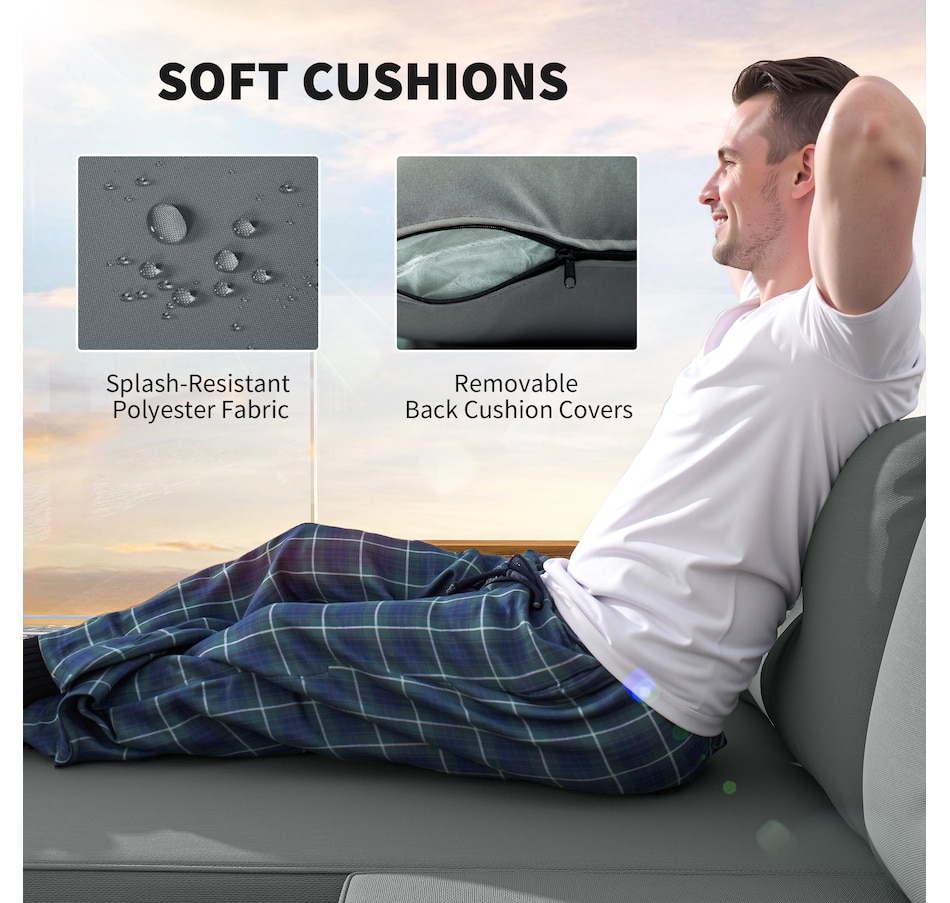 ● Water-resistant polyester fabric cushions suitable for outdoor use