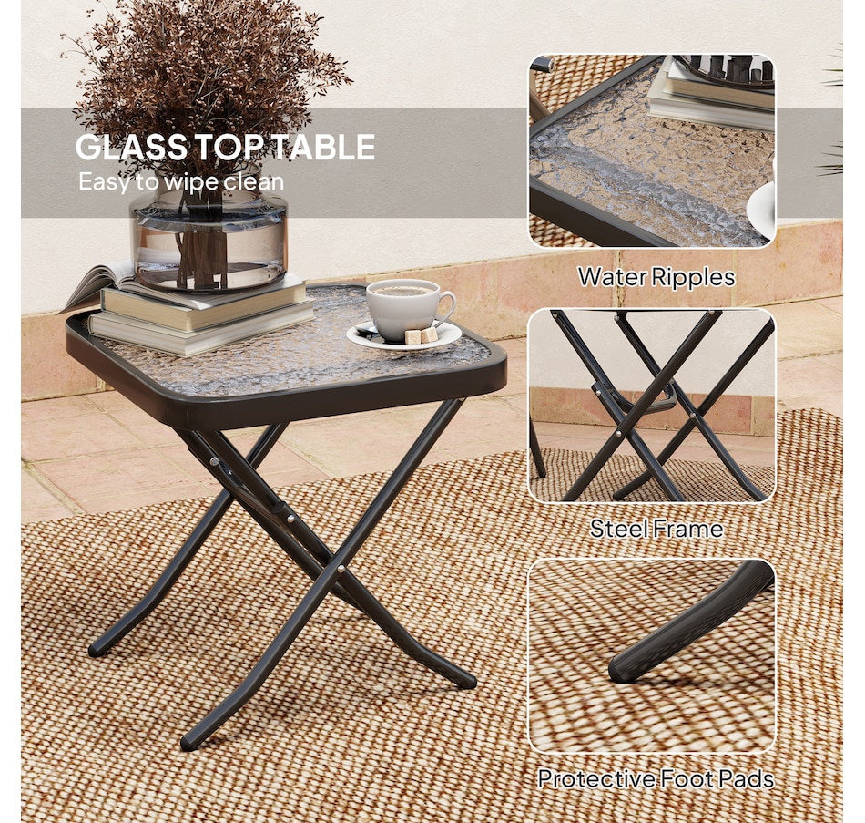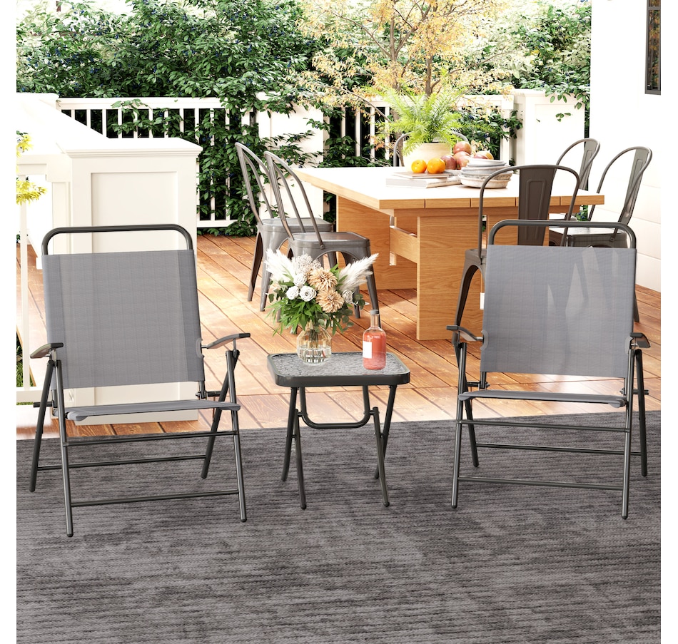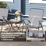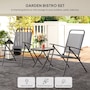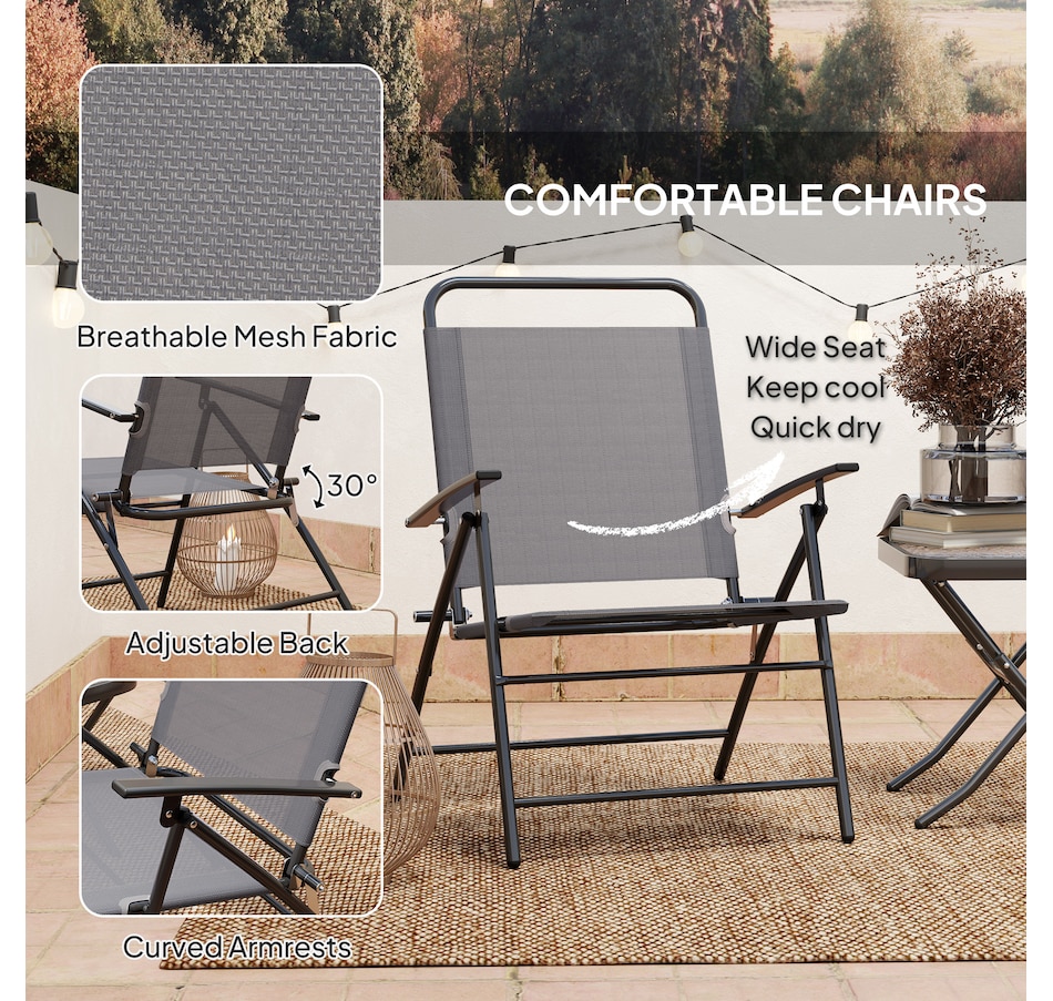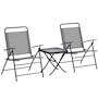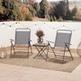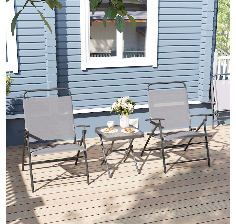 Brighten your outdoor space with the Outsunny 3-piece patio set, a charming bistro, or a chic lounge addition for small spaces. Our outdoor table and chairs can be folded to save space when not in use. Powder-coated steel frames offer a strong patio table and chairs. Featuring a breathable mesh seat, adjustable back, and supportive curved armrests, this balcony furniture set is a stunning and cozy corner for friend hangouts, daily talk, and sunset viewing.Features: