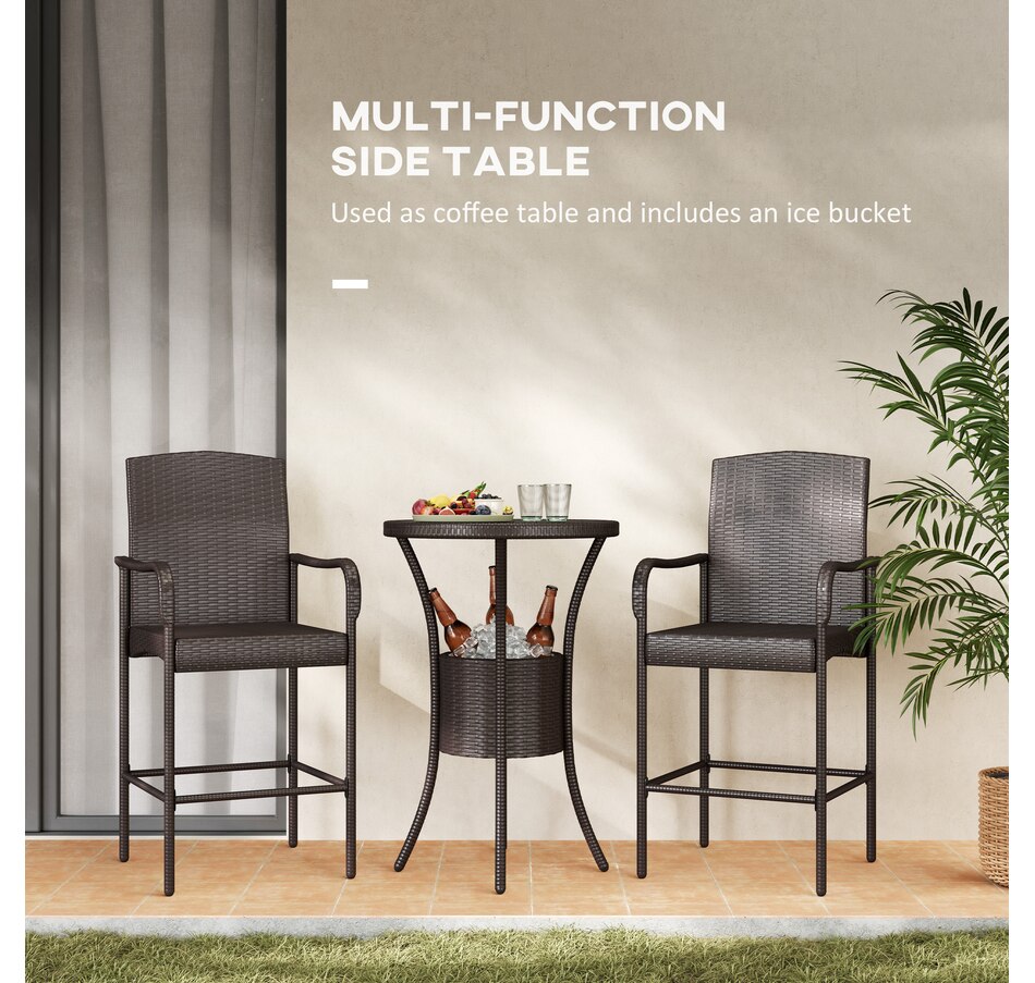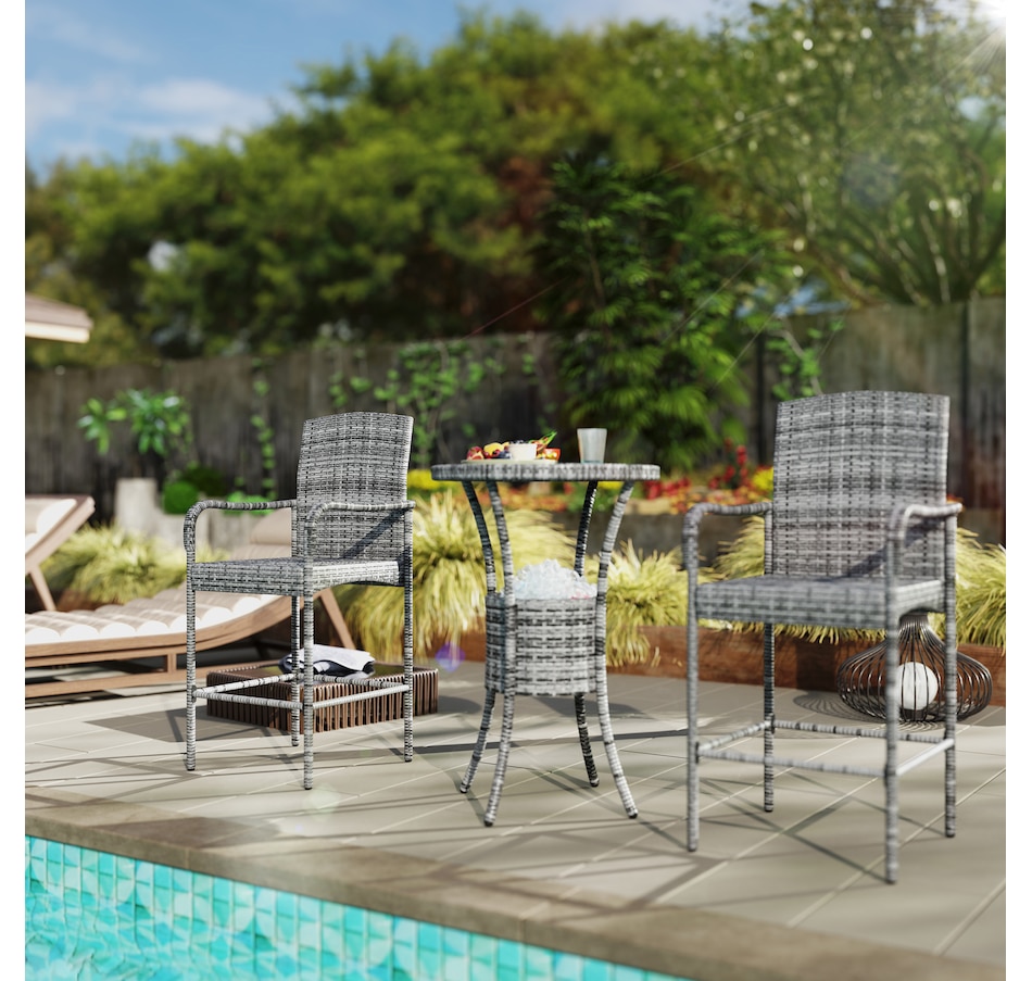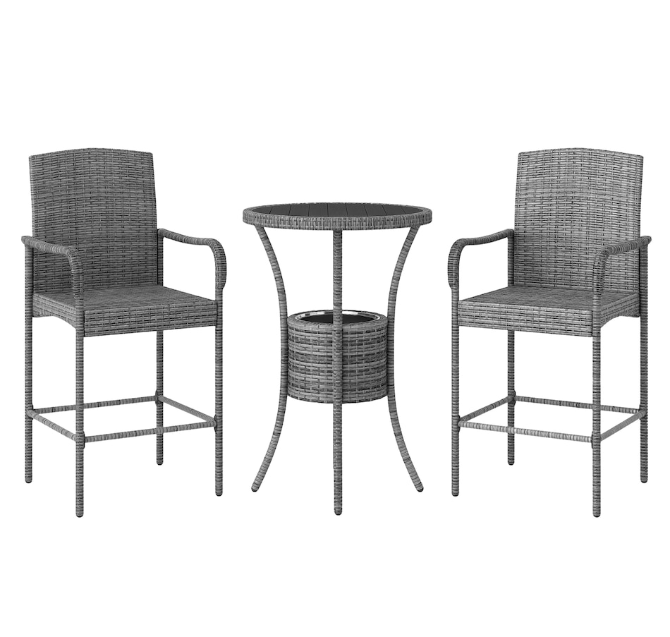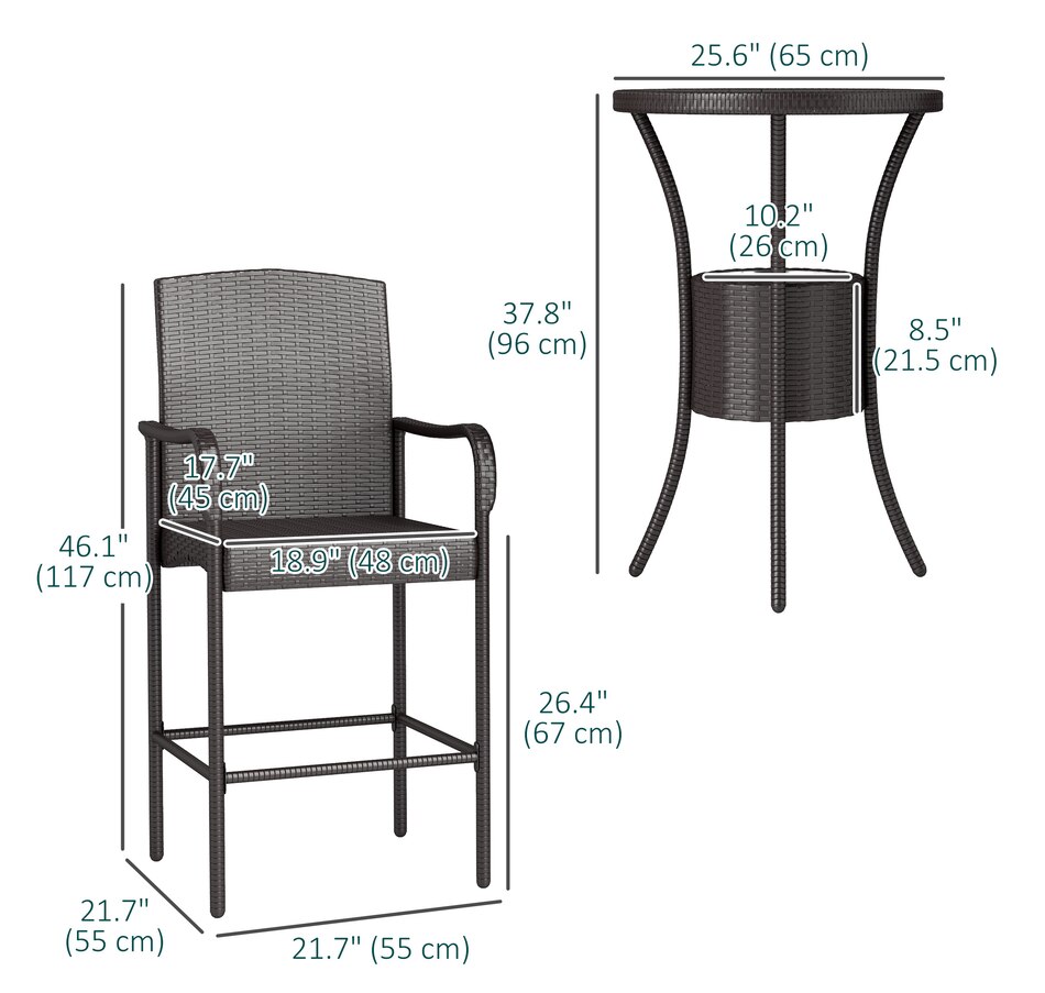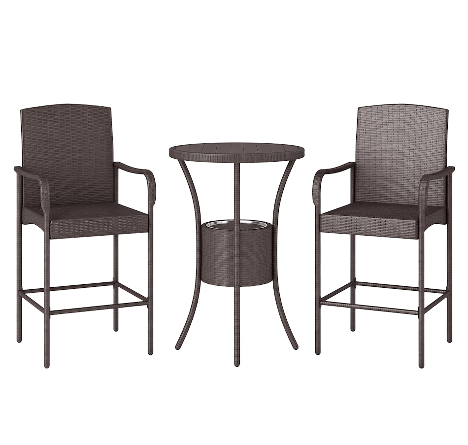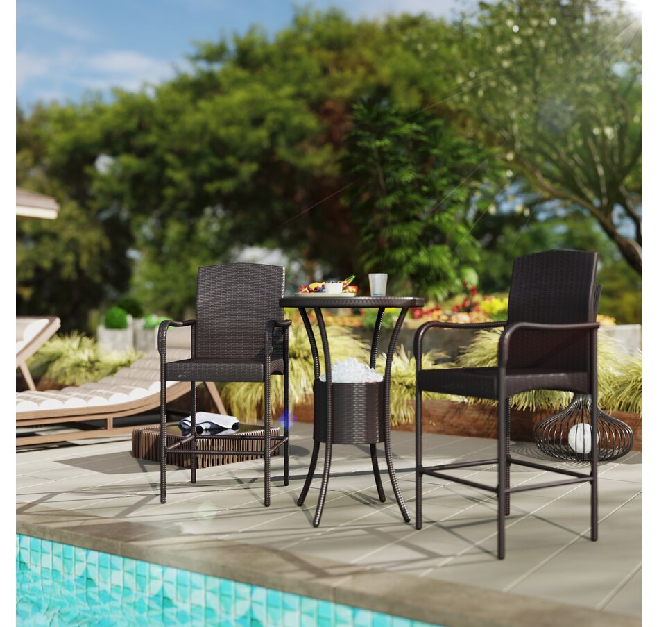 ● This classic 3pc wicker bar set with 1 table and 2 stools, is a great addition to any outdoor area