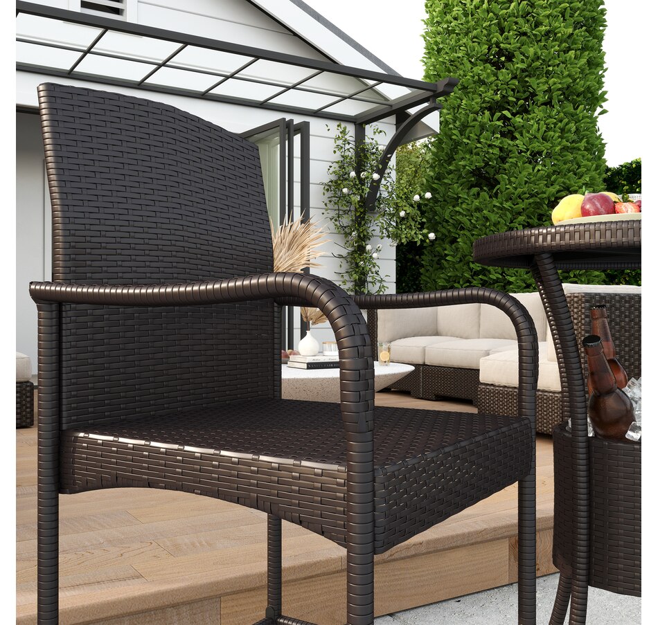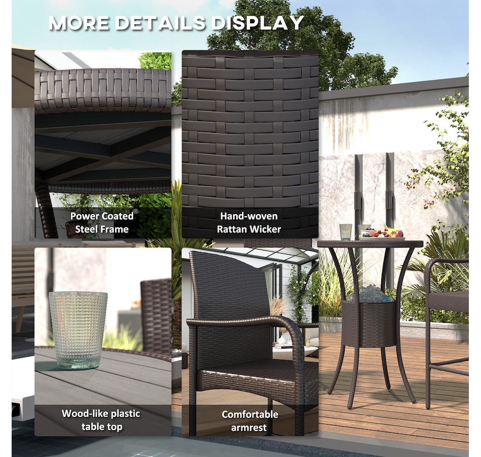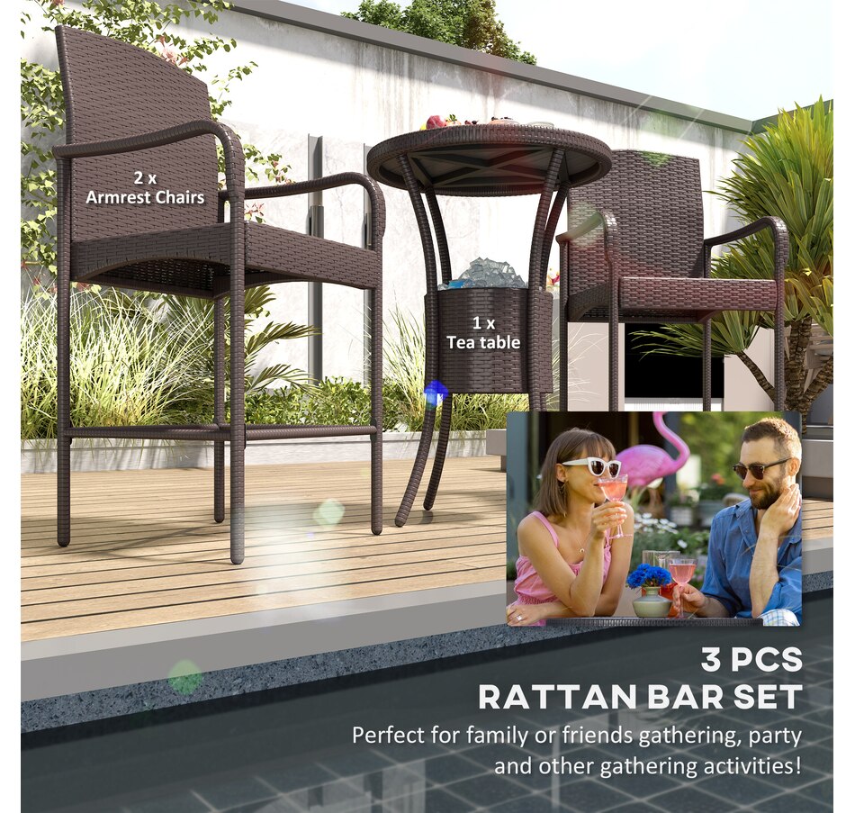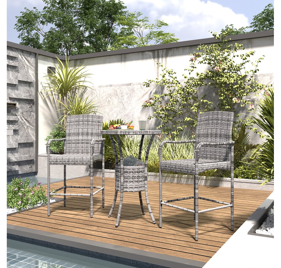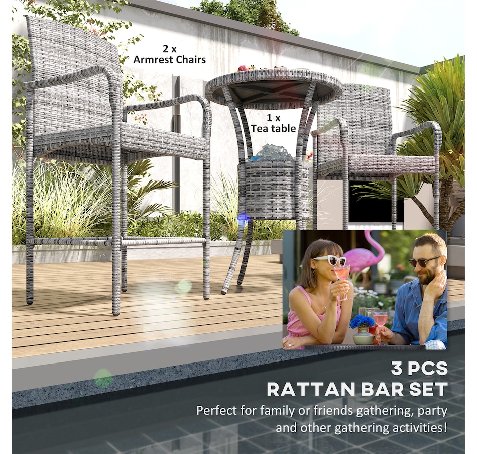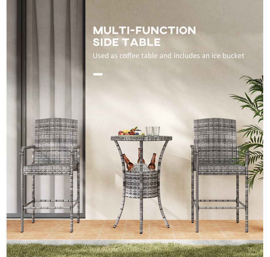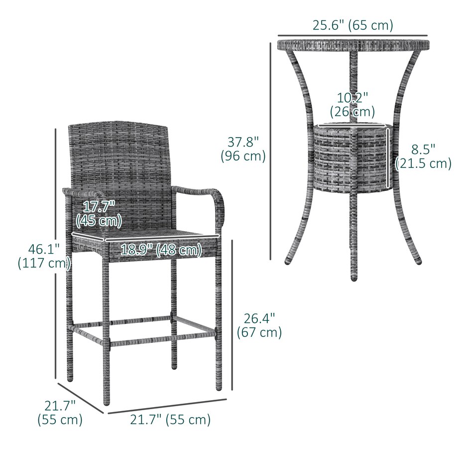 ● This classic 3pc wicker bar set with 1 table and 2 stools, is a great addition to any outdoor area