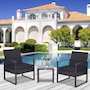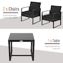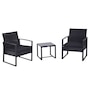 Outsunny offers a classic way to enjoy outdoor living with this 3pc patio rattan set. The 2 chairs and 1 matching teapot set can make a great addition to your outdoor patio or deck. Its exquisite workmanship ensures lasting durability. The table has 0.2" thick tempered glass for solid beverage placement, and the thickly padded cushions offer optimal comfort. The Outsunny 3-Piece Set is essential for any backyard or patio setting to complete the look in comfort and style.